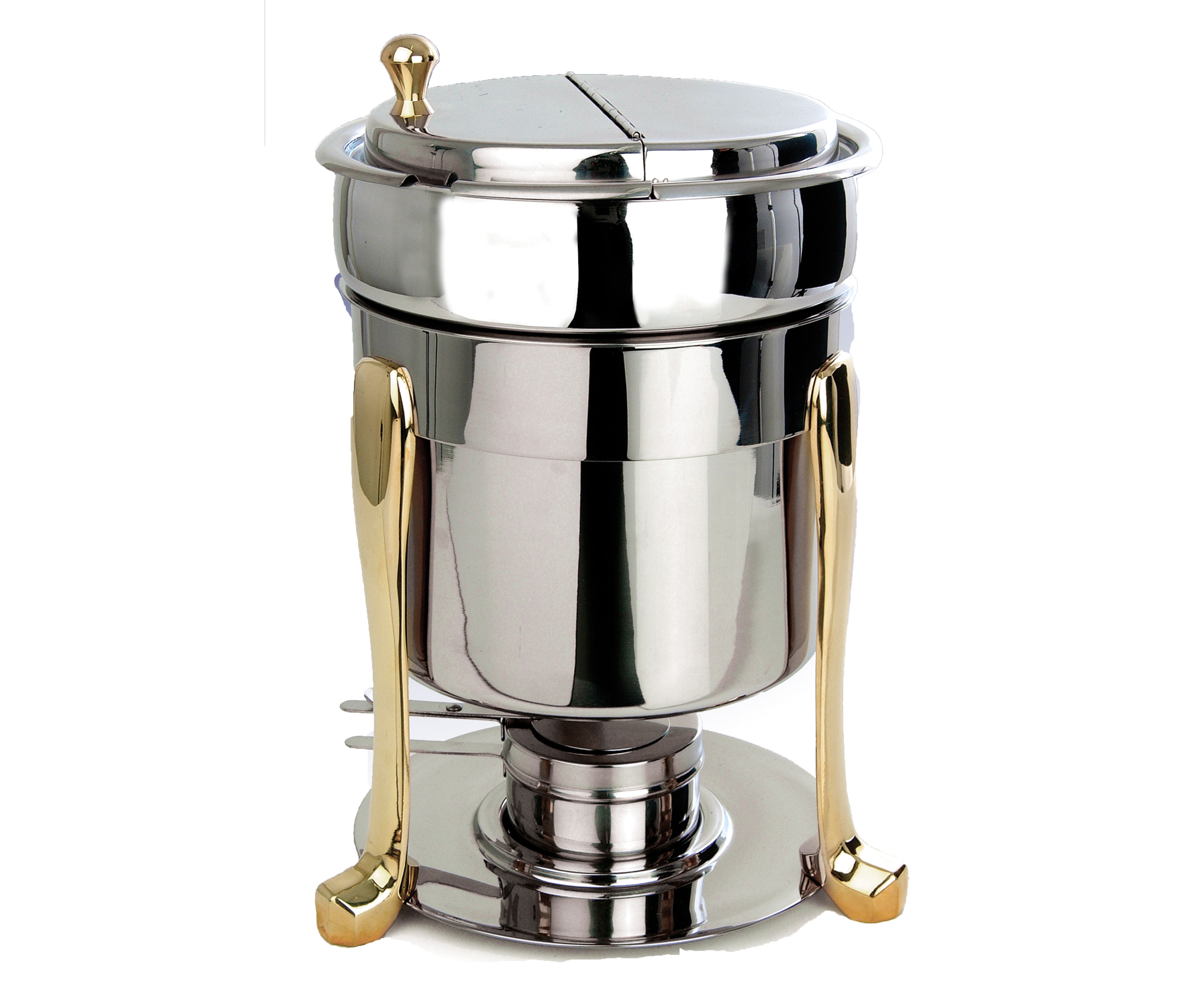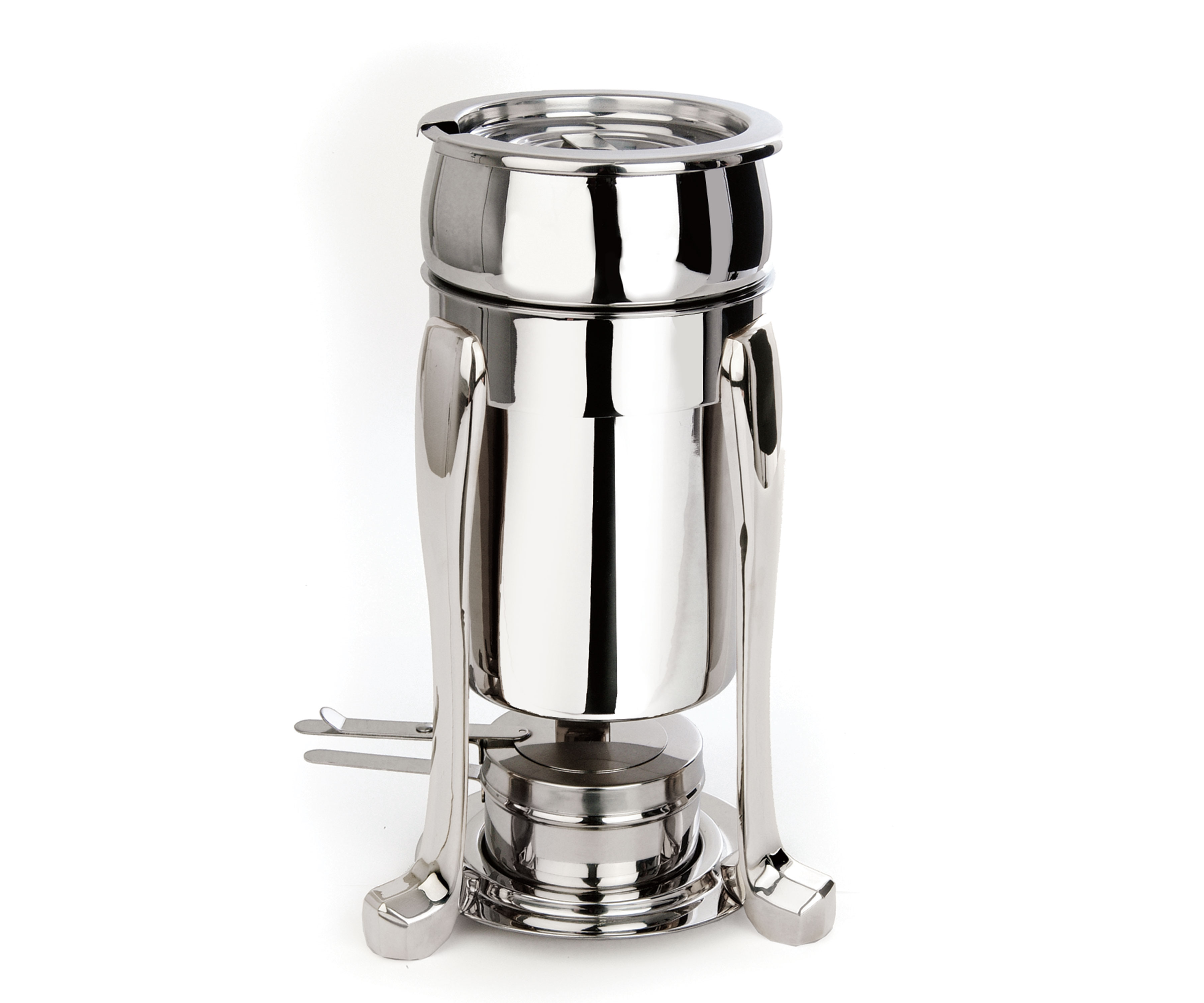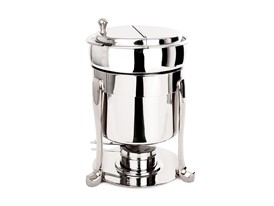 Classic sleek design creates a statement for every buffet presentation. Eastern presents longtime favorites in style & performance, Popular Marmites for soup, sauce, syrups and Aus Jus. Non-skid rubber end for stability. Convenient shelf to place a gel sterno. Water pan and food pan included.