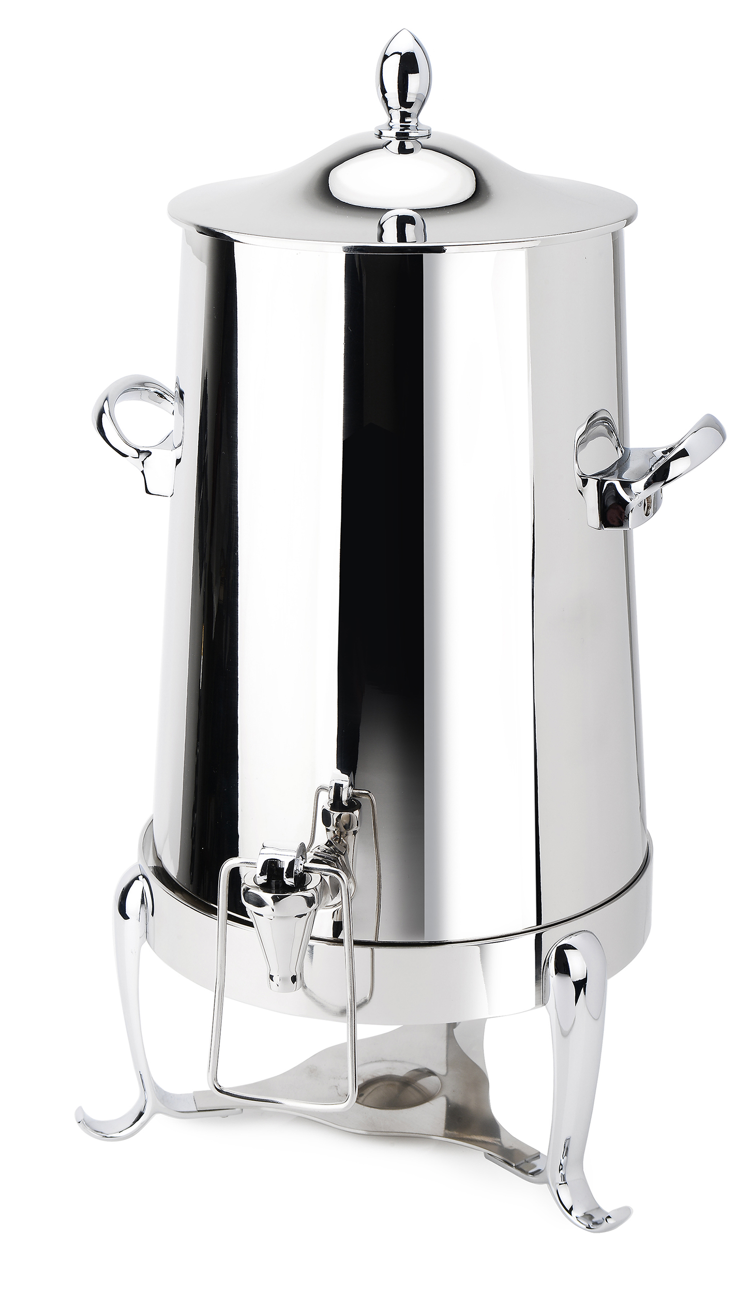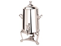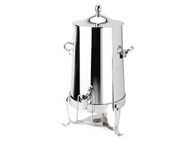 Bring timeless elegance to your self-service coffee stations with the “Steamer” insulated Coffee Urn. Featuring Eastern’s Park Avenue beveled legs; this urn adds flair of sophistication to your catered event's buffet line or hotel's beverage station.Constructed in 18/10 stainless steel with a removable body and a hands free spigot. Available drip catch #9450 stainless steel tray slides under spigot, as well as a variety of id tags#9542 labeled as you wish. Use it for hot water, coffee or tea, this urn is a true winner.