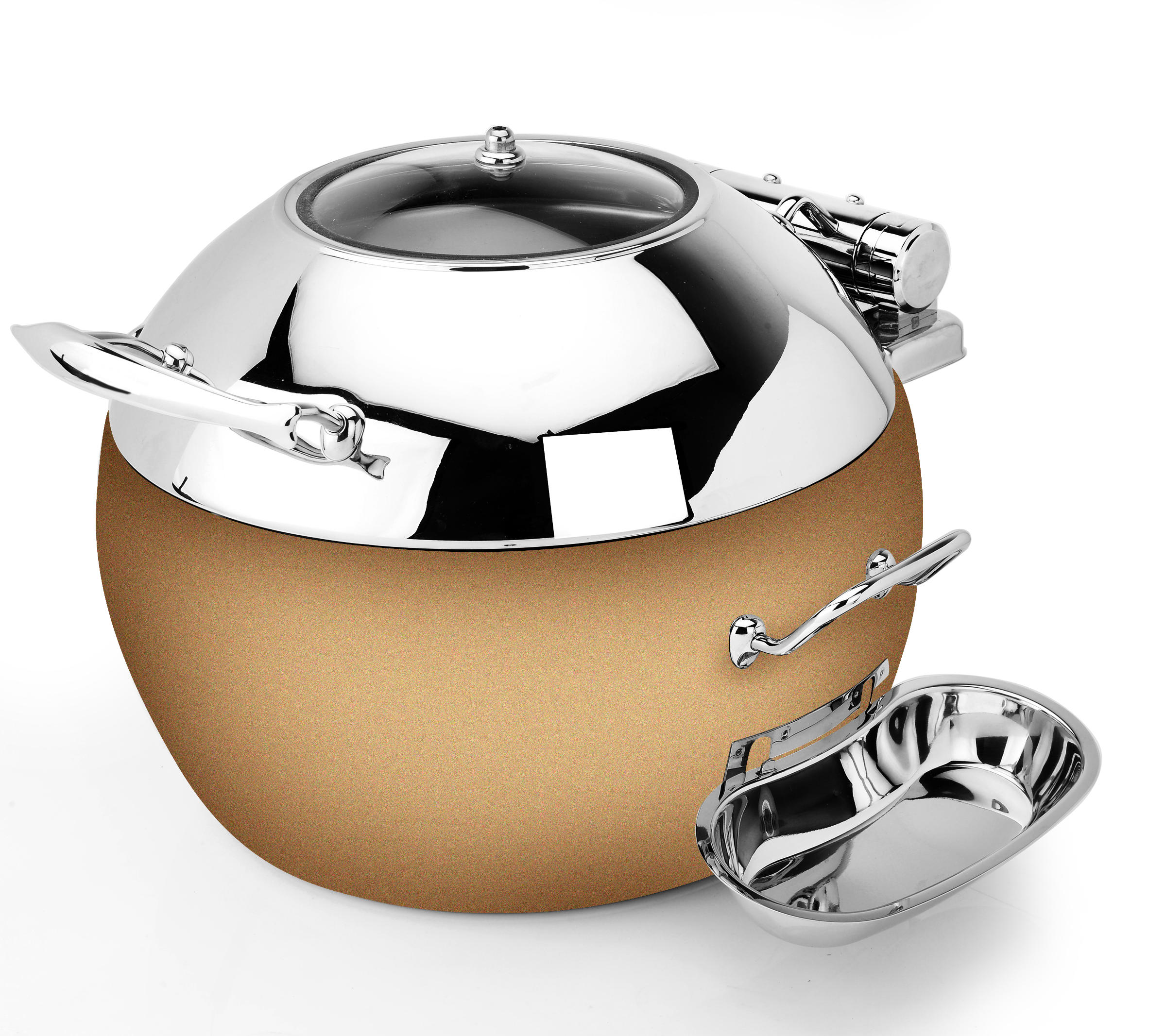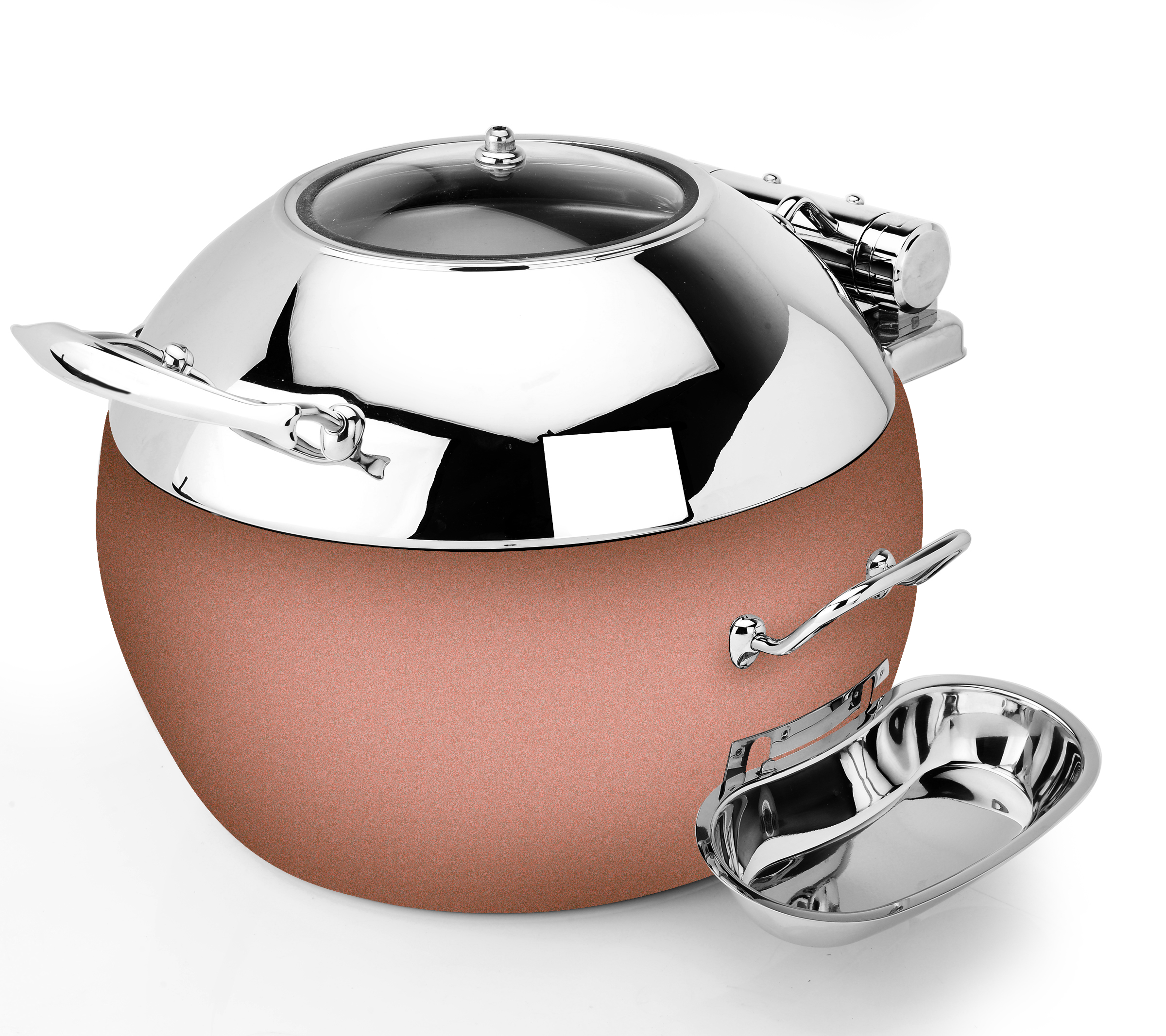 Crafted with a regal touch & imbued with high end features to add a royal flair to every buffet. Eastern’s Crown Induction soup chafer now offers an elegant dome cover that provides a high profile look and stops at any angle for safety purposes. Designed in heavy duty stainless steel, one piece constructed. Works on all induction warmers, cookers or as tabletop soup chafer.