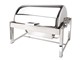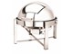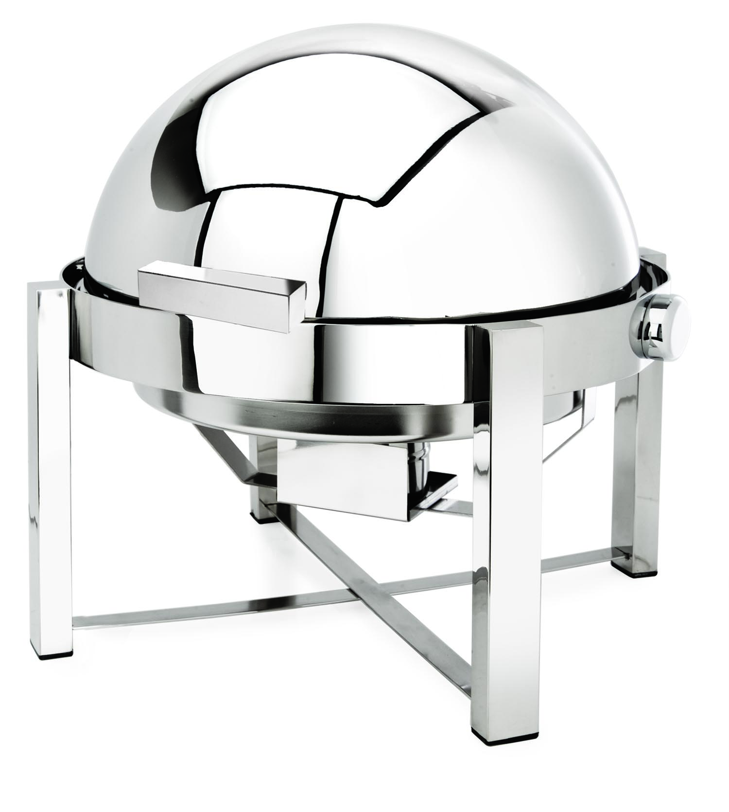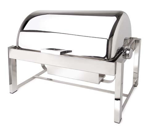 Its elegant dome cover provides a high profile look and stops at any angle. Designed in heavy duty stainless steel, one piece constructed. Convenient shelf to place a gel sterno. Perfect weight for easy transport. Available in round as well, with a variety of legs.