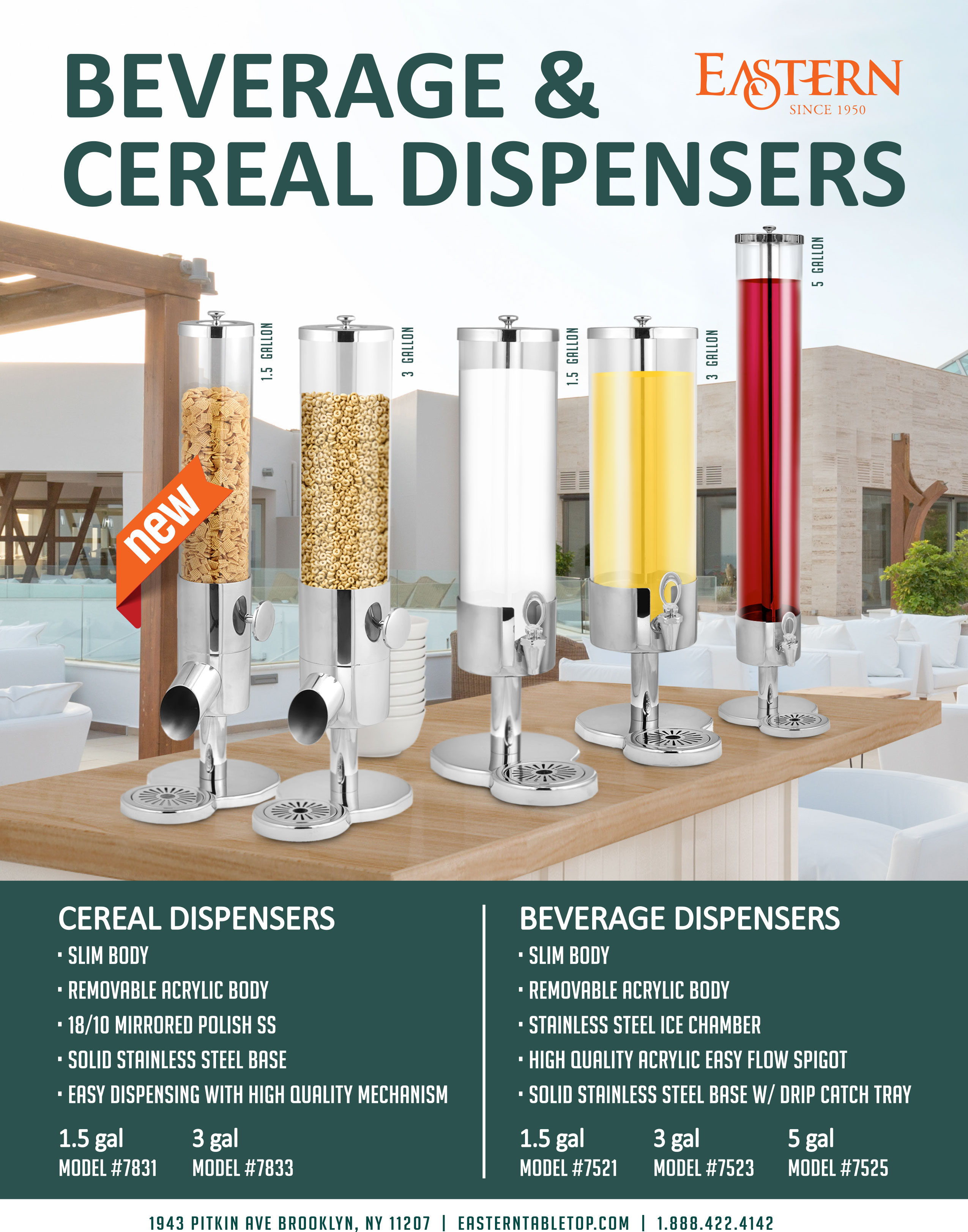 Slim and Modern, an innovative fashionable look for your breakfast buffet. A solid stainless steel base for durability while the acrylic container gives you the prefect view of what is inside. Get it in singular or double for various cereal or goody options.