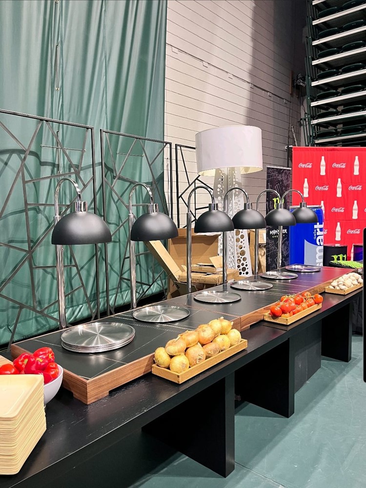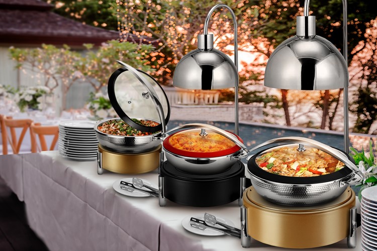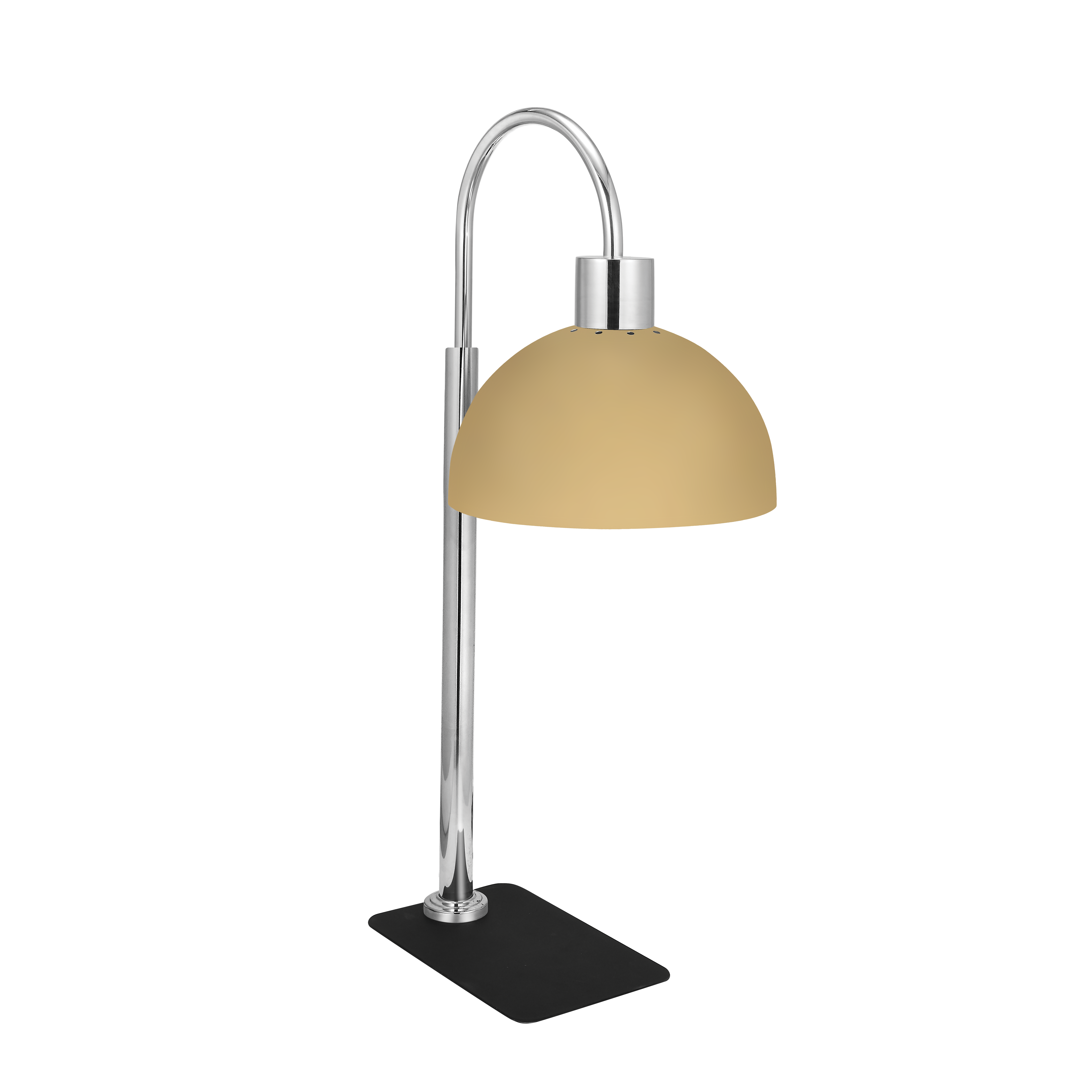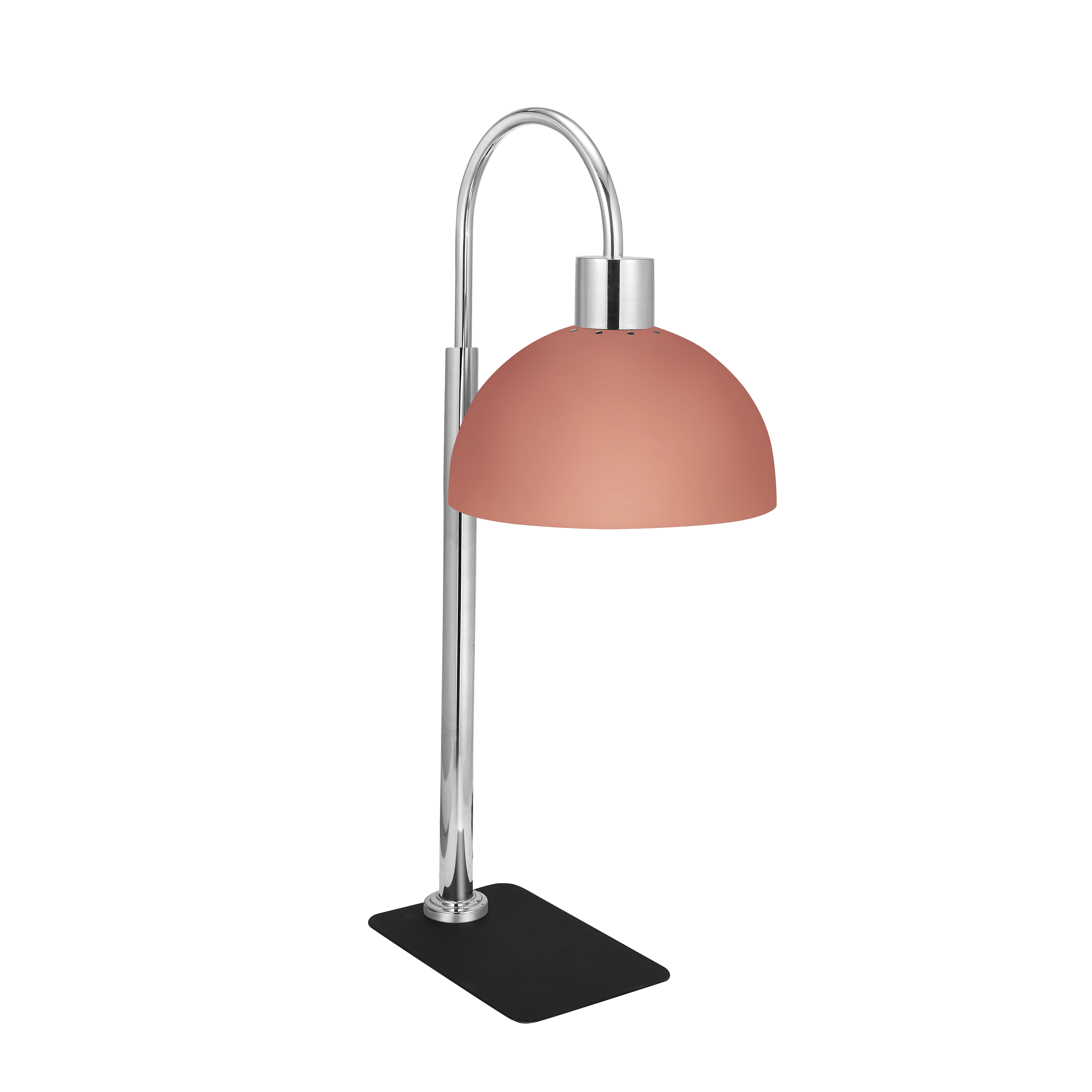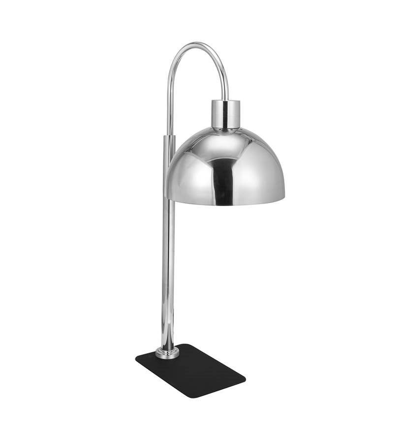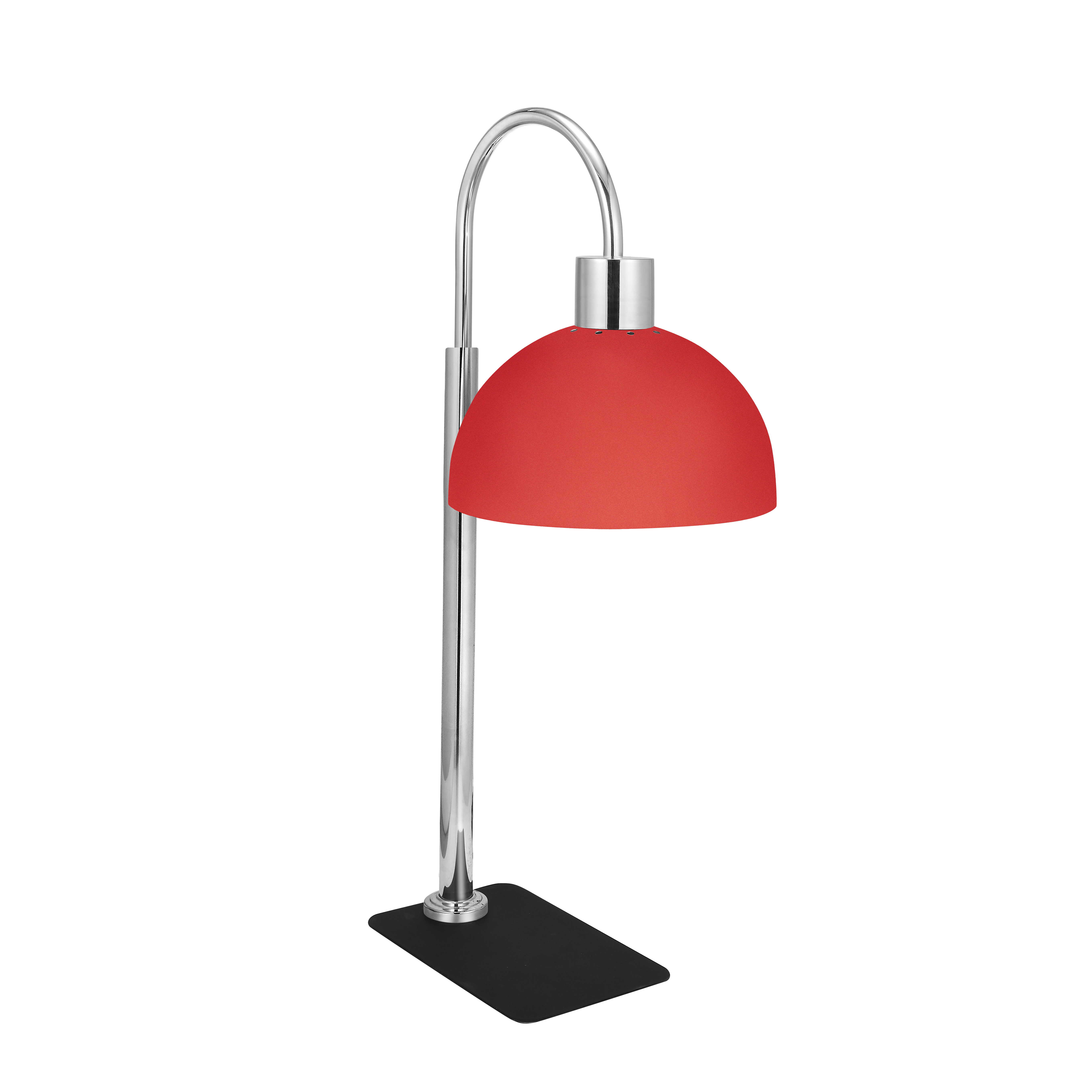 Single heating lamp with a circular canopy and a reinforced central post. use 110 volts and use 250 watt heat lamp bulbs.