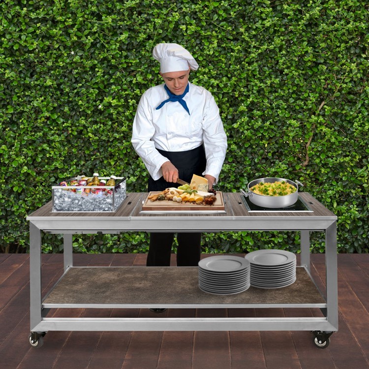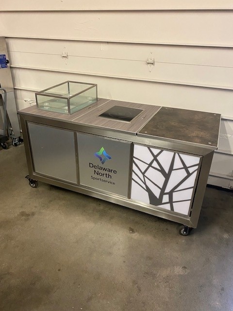 • Glass Built-Up ice Bin• Drain with Valve Included• 34 Lbs. Capacity• Stainless Steel Edging• Gray Grained Laminate Border• Side Handles for Easy Grip