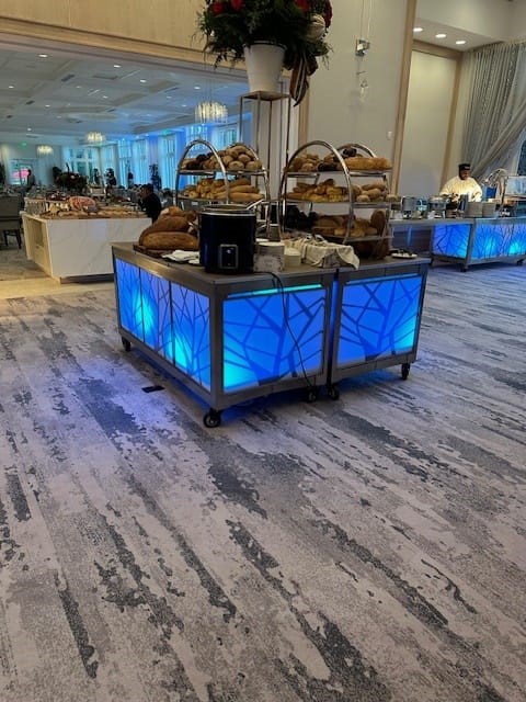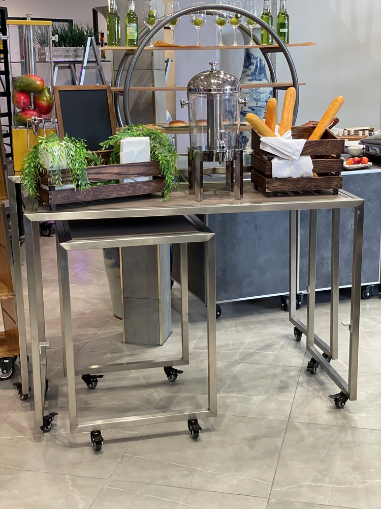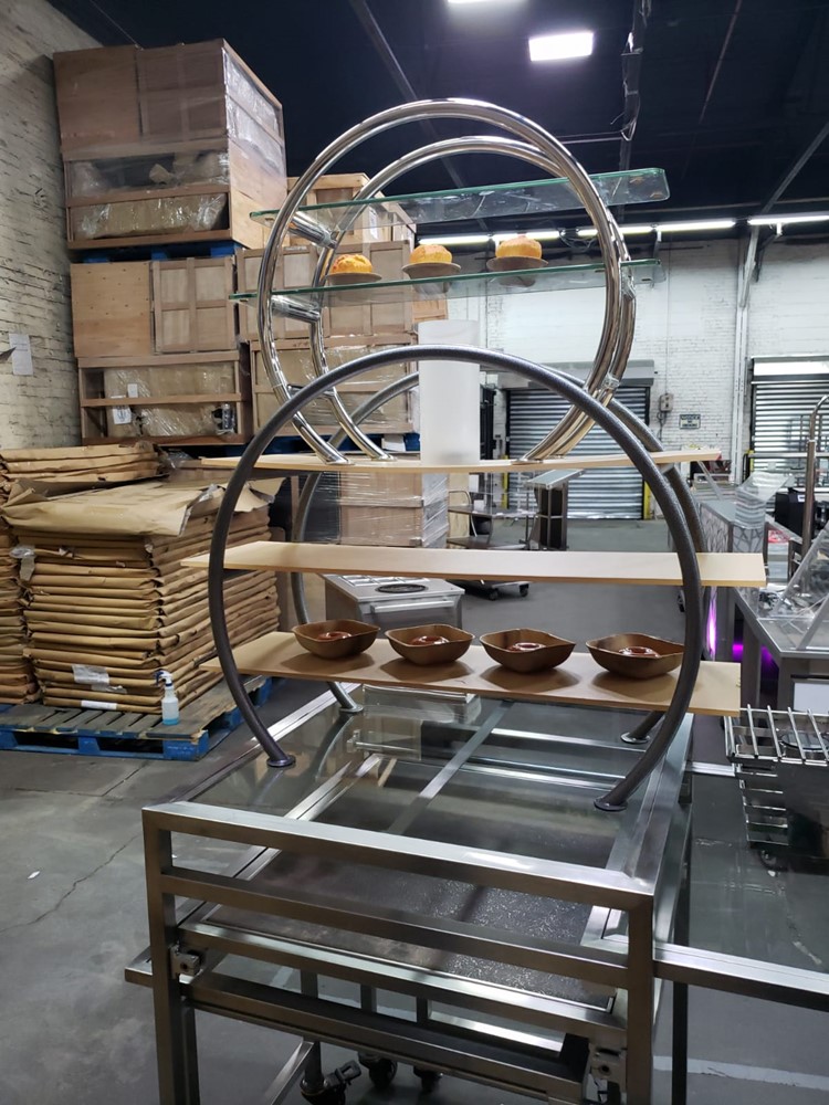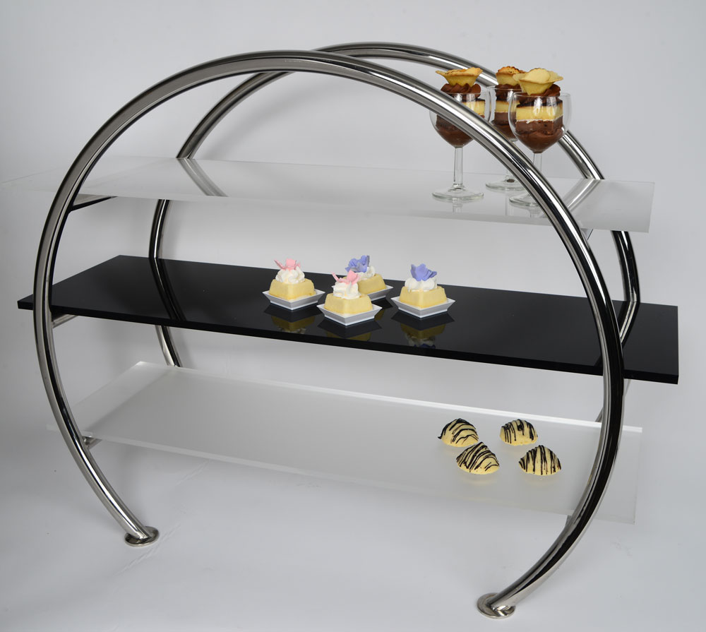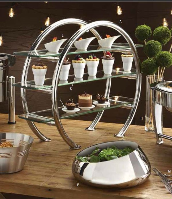 Eastern’s new Circular Tabletop Riser puts a new twist on the term simplicity. The versatile Circular Riser is a modern and high-class look on any buffet which compliments beautiful food presentations. Double sided accessibility with triple levels for tiered food display. Designed with mirrored stainless steel stand and three glass shelves. Several shelving options and sizes available.