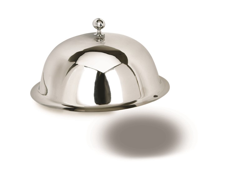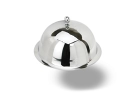 The elegant way to keep food hot while diners step away from the table. Exquisite Stainless Steel / Silver Dome Plate Cover adorned with fancy finial.