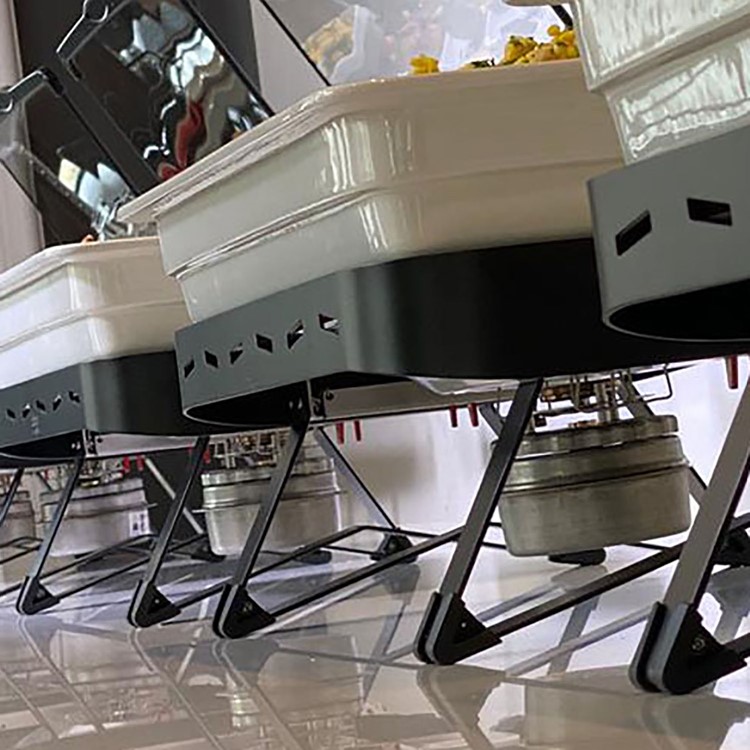 It stays cool-to-touch, it automatically shuts off if over heated and eliminates the need for open chemicals being used next to food. It uses up to 75% less carbon than gel or wick pots and because it can be refilled, ZERO FUEL is WASTED making it the sustainable choice for heating buffets.