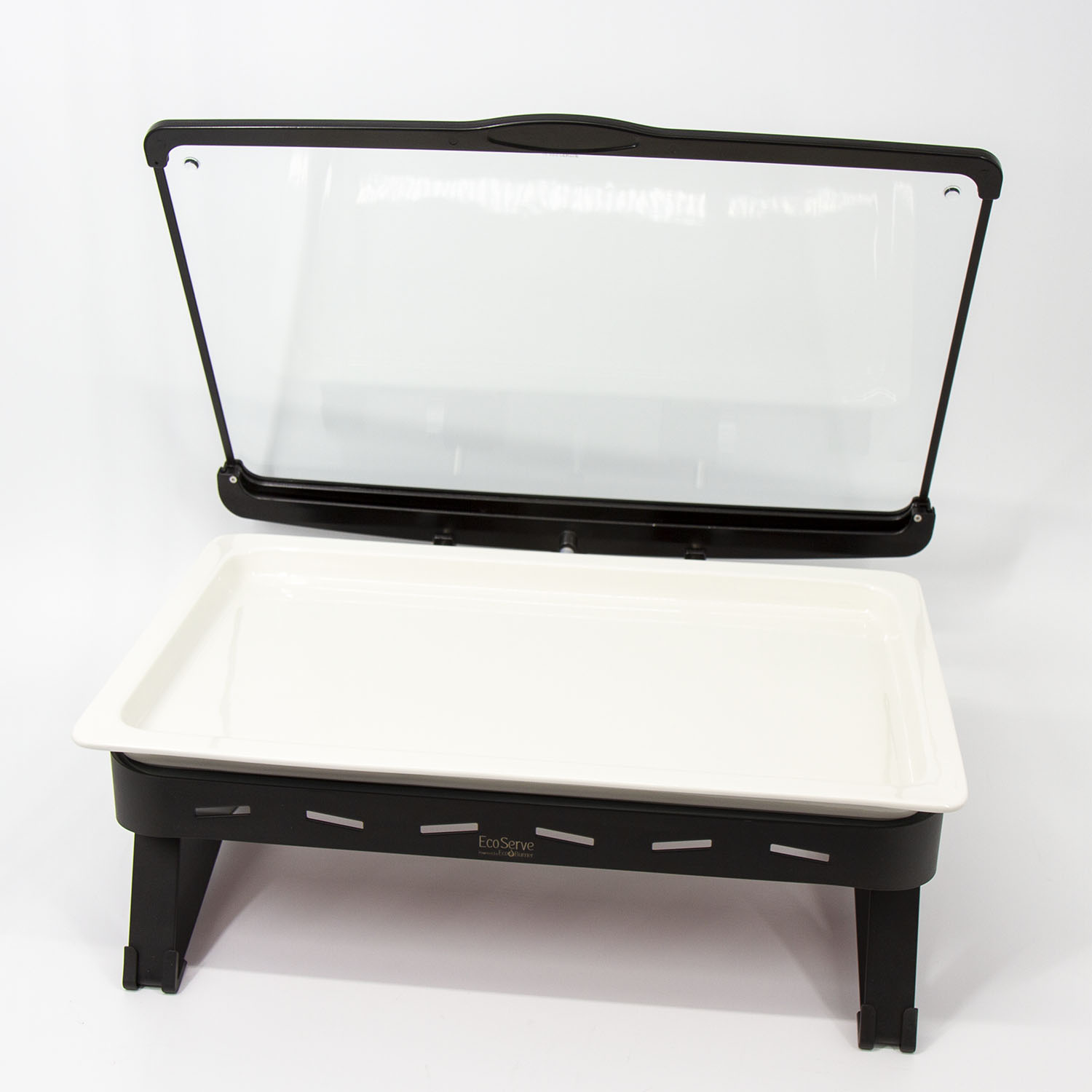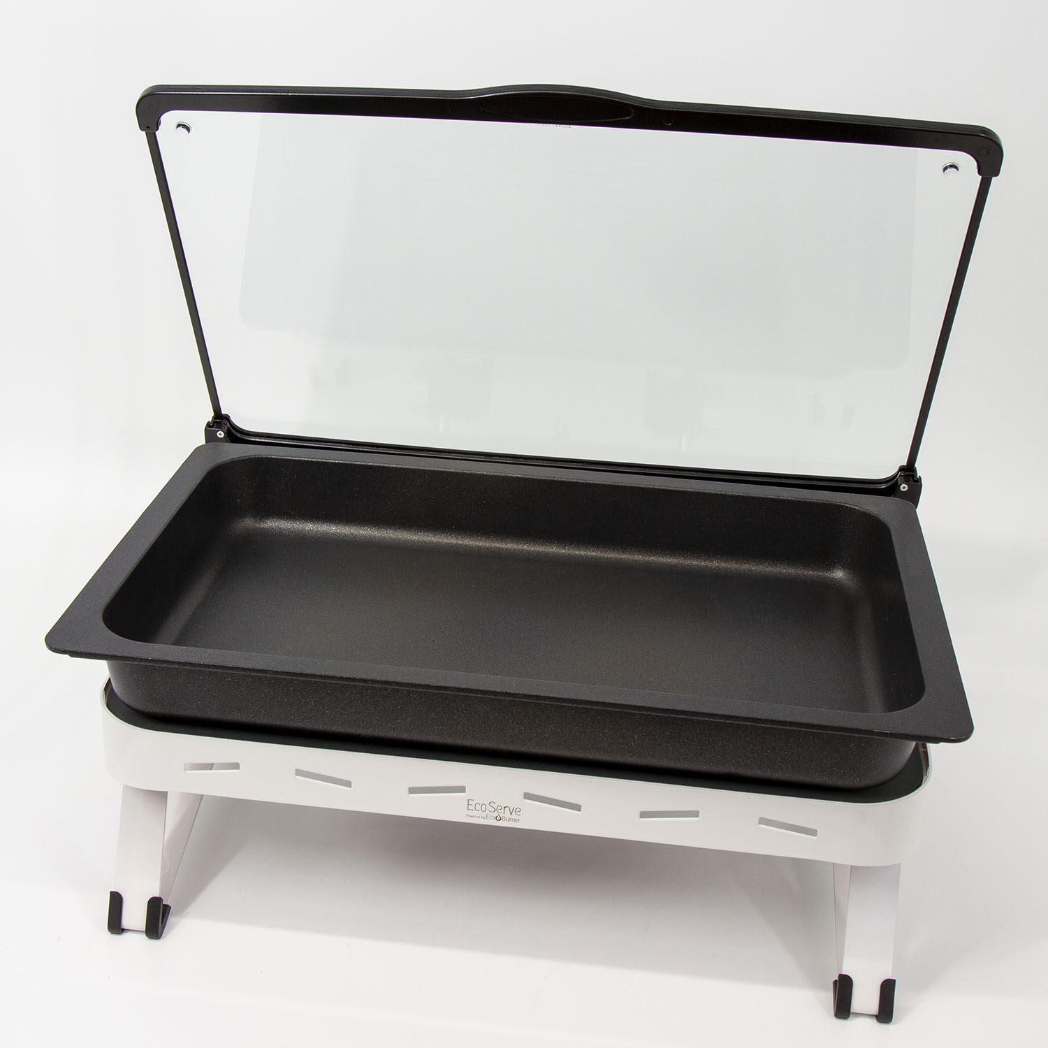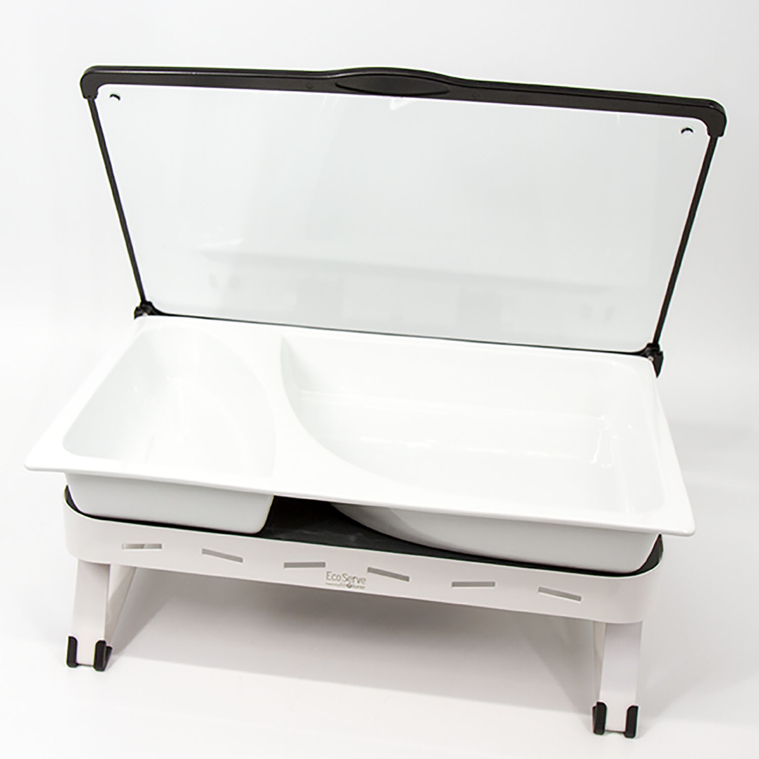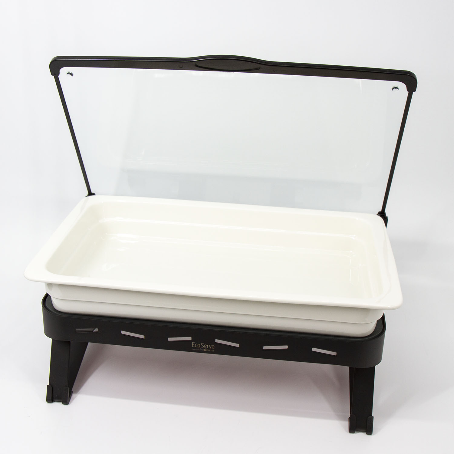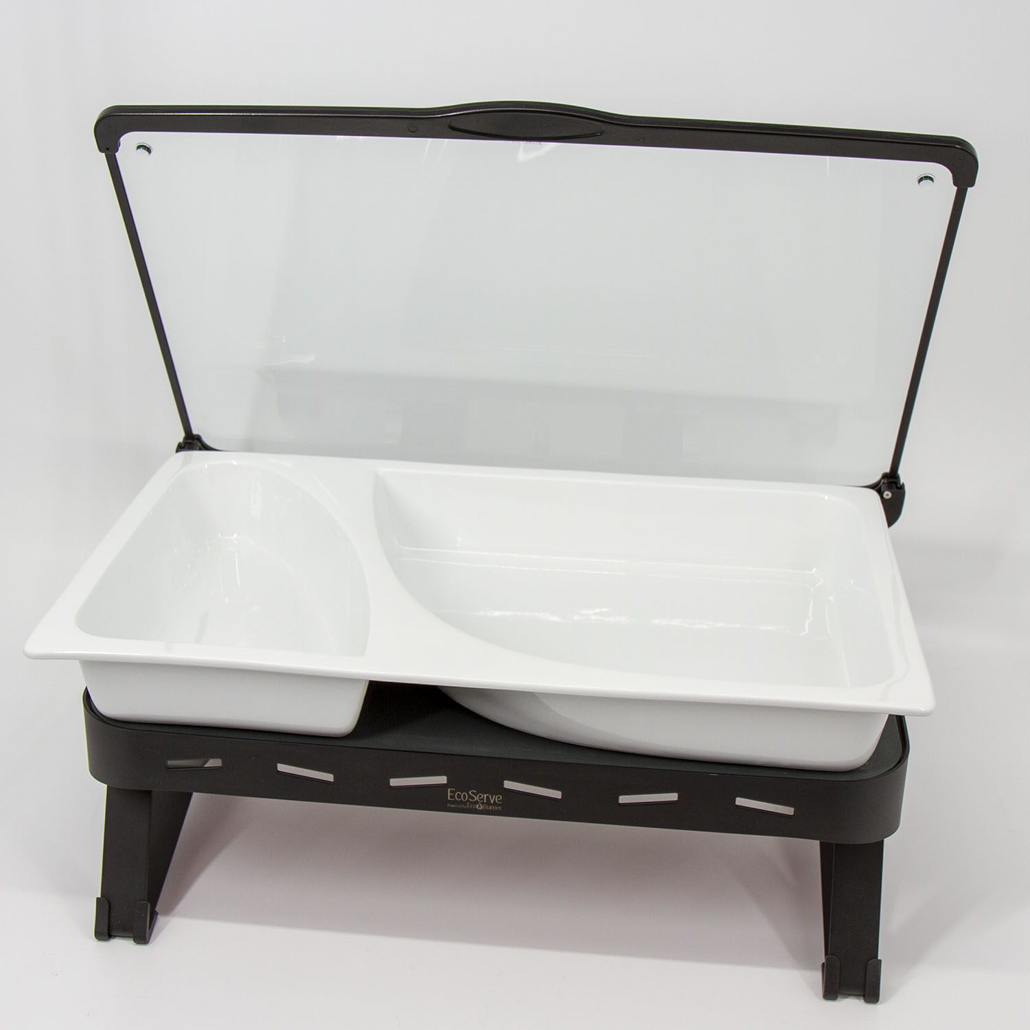 White EcoServe GN base, Glass Lid and Premium Black Aluminium Dish
