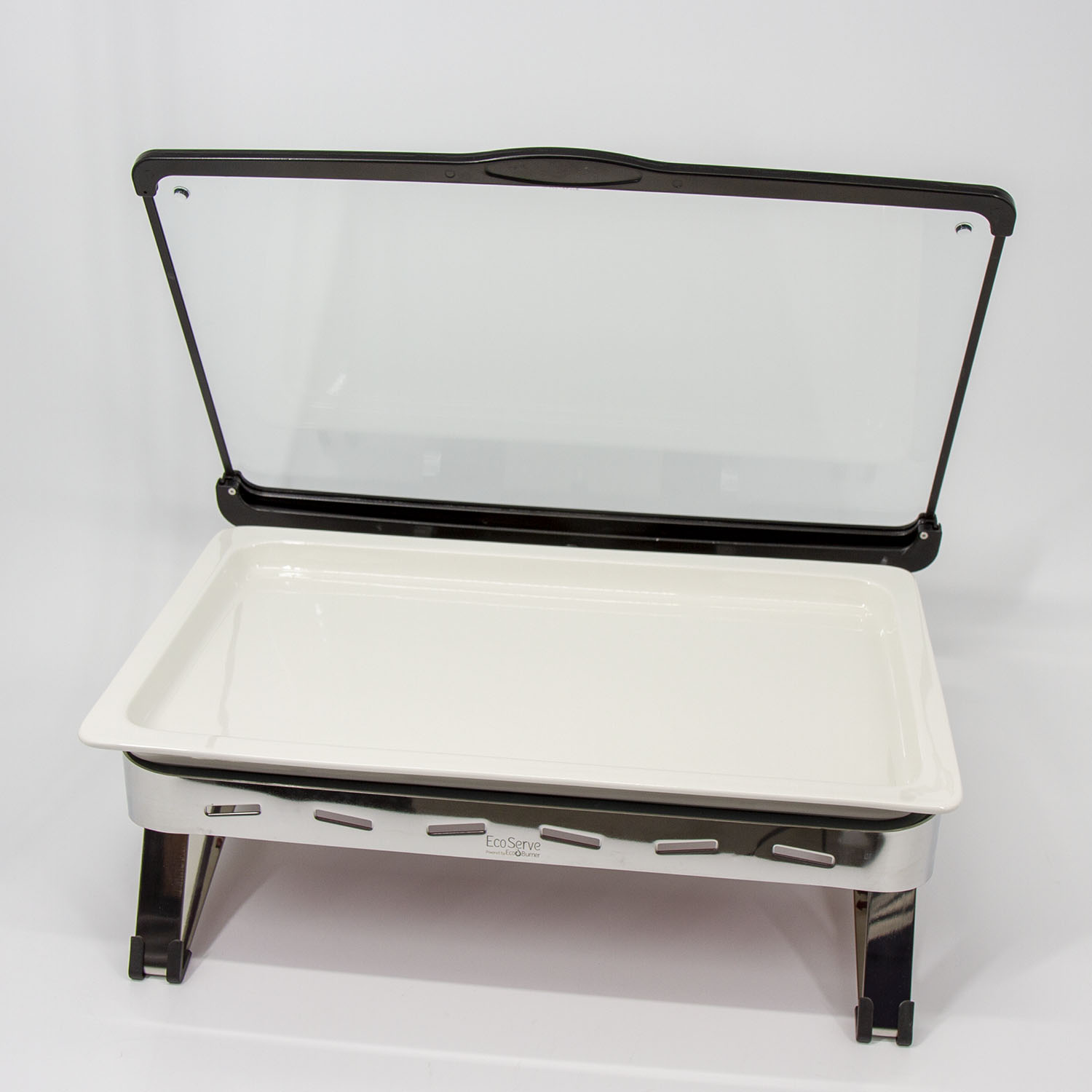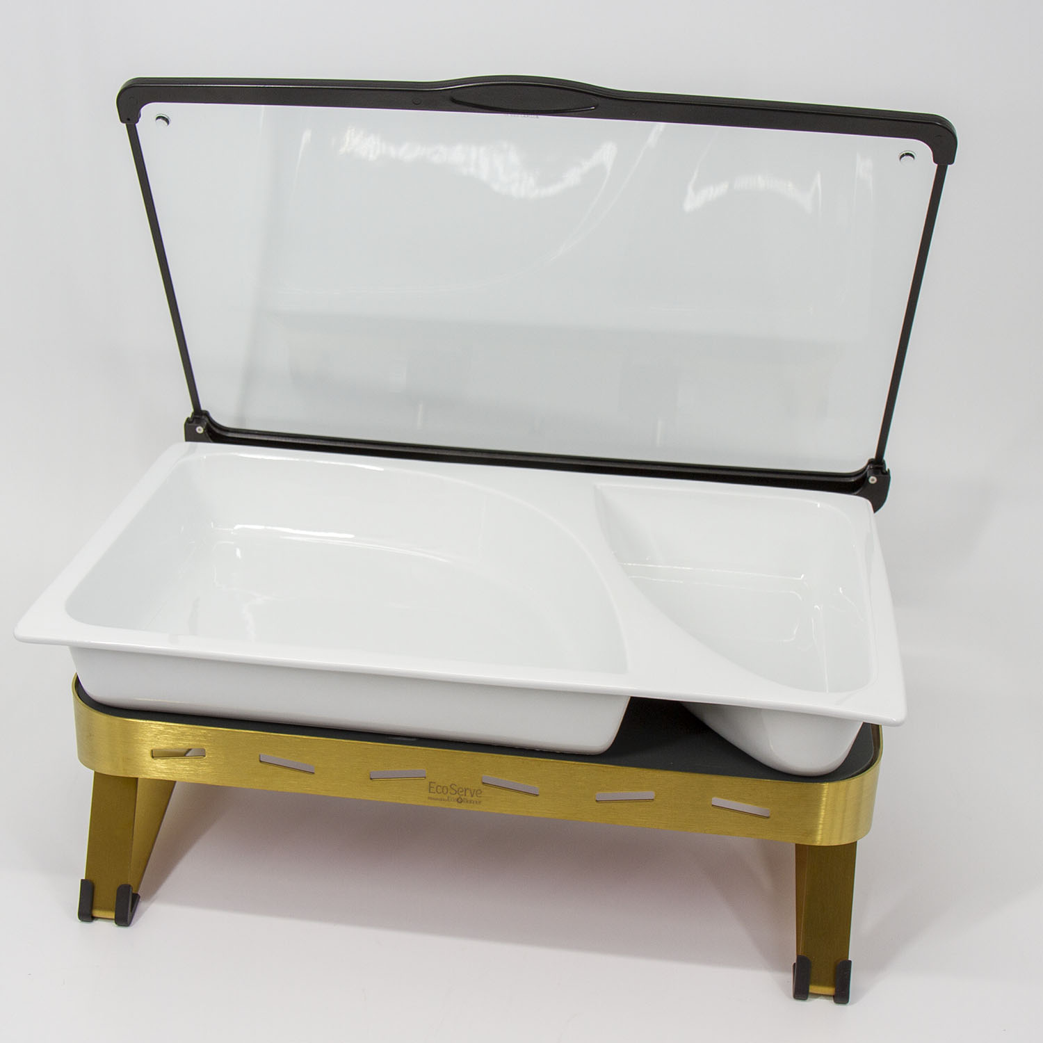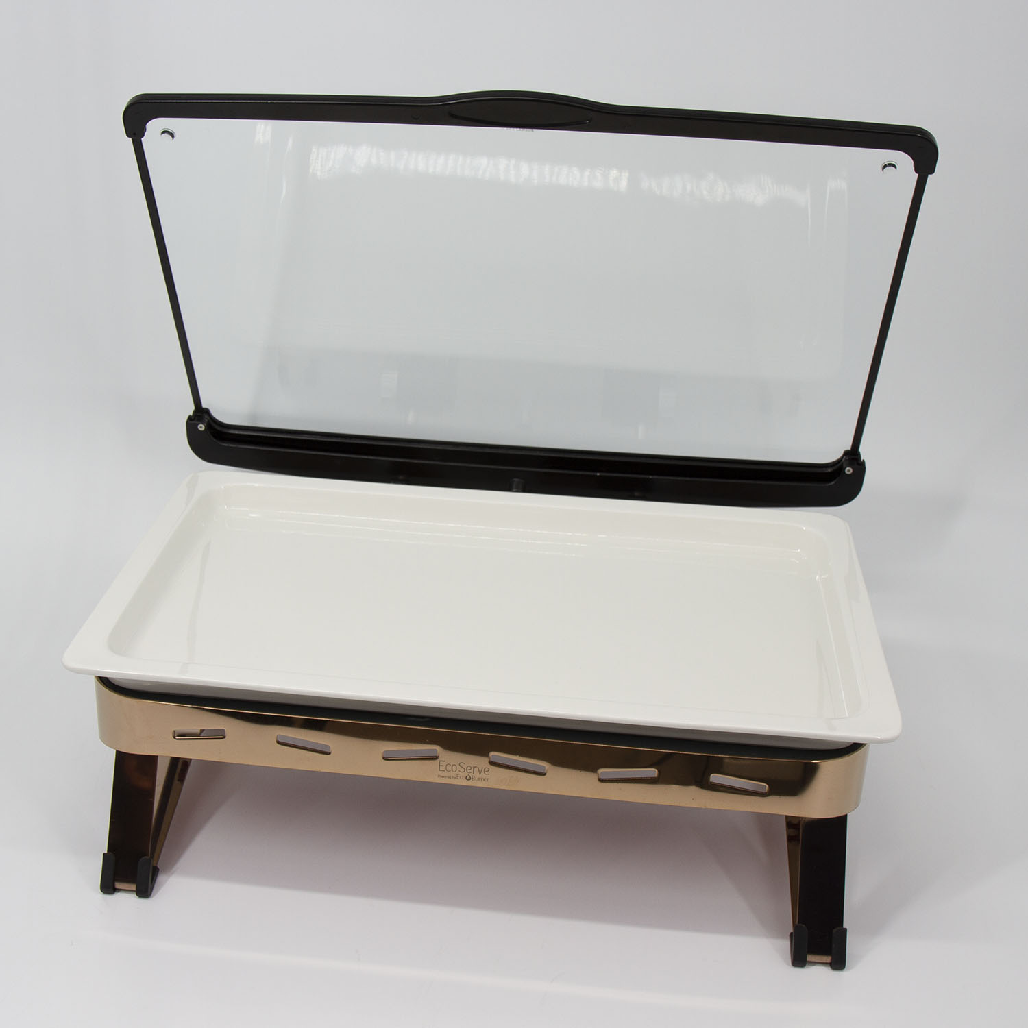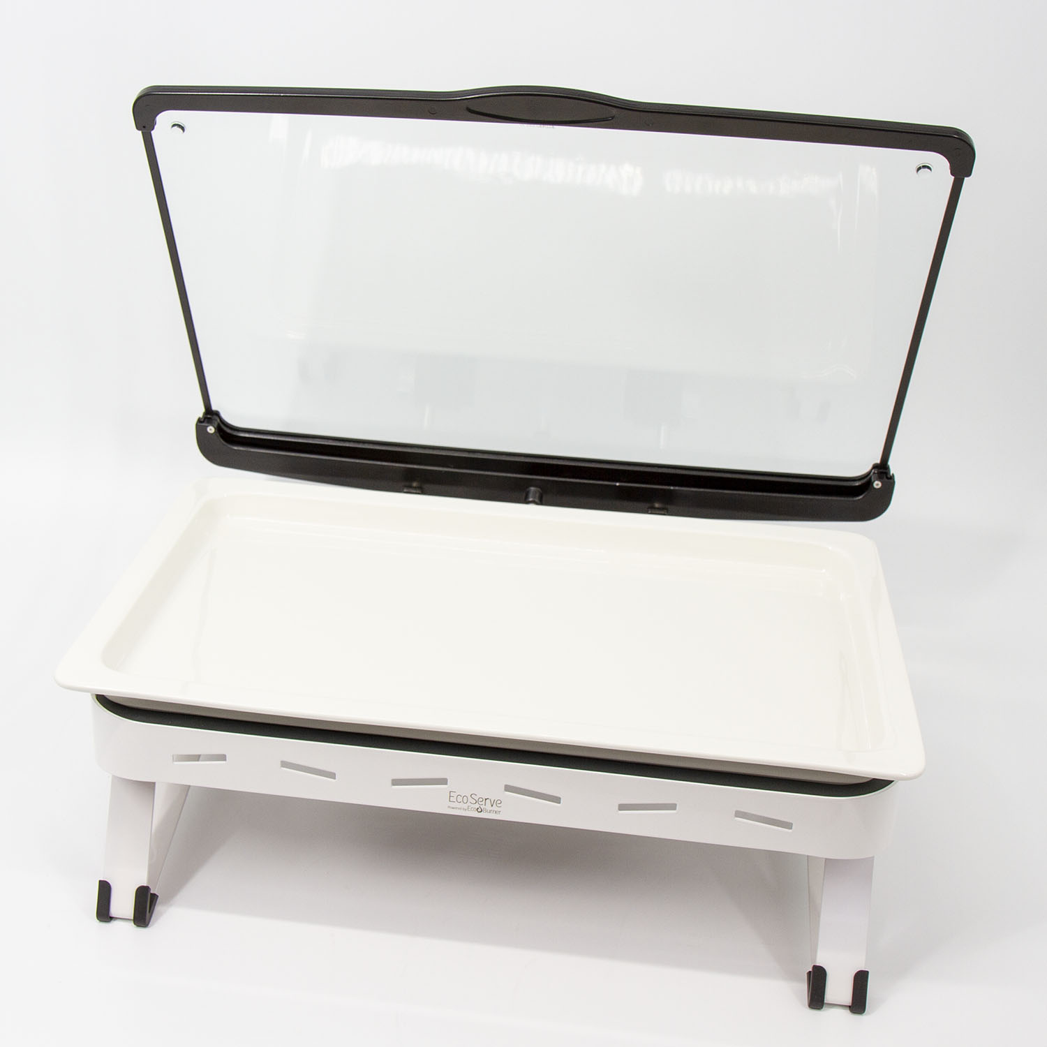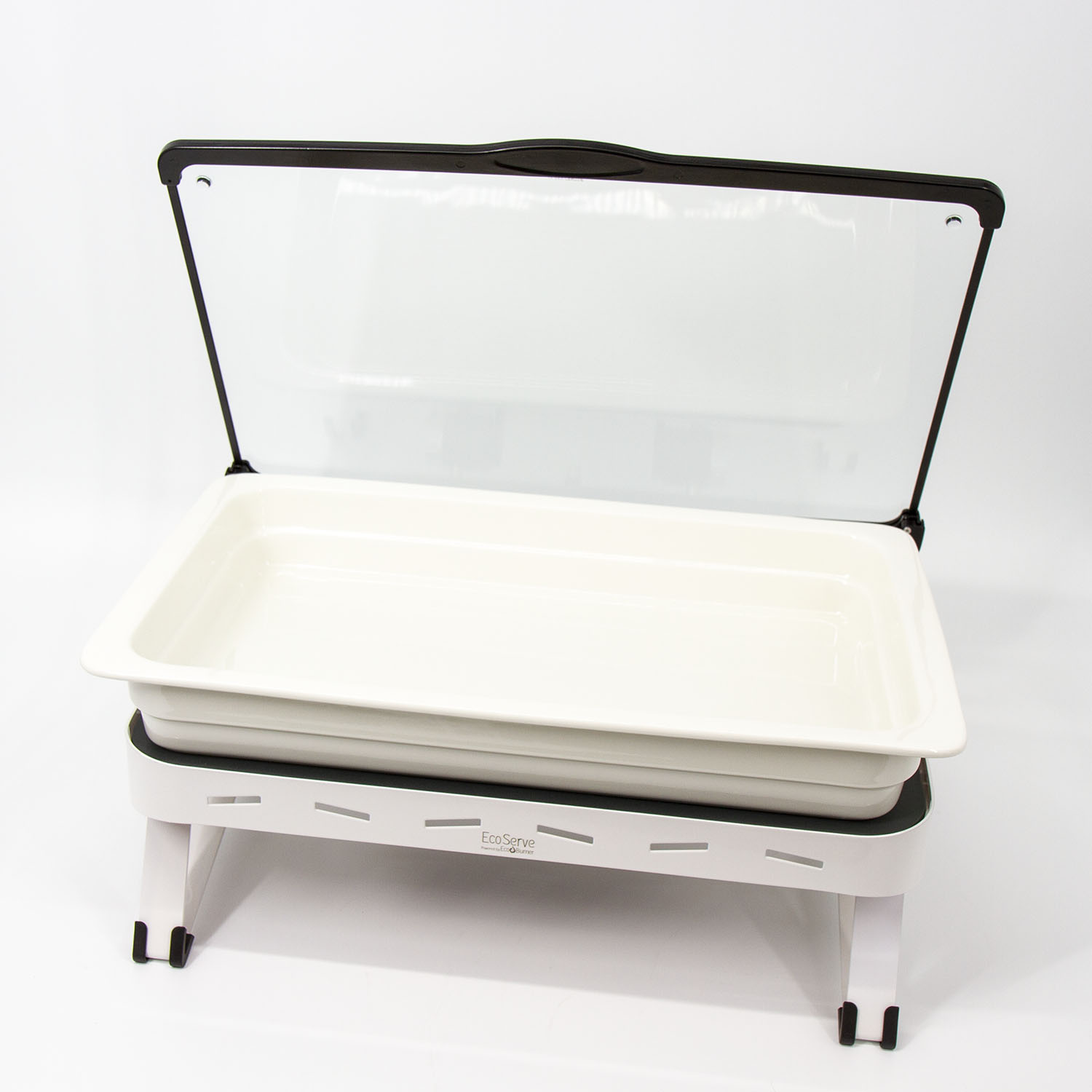 White EcoServe GN base, Glass Lid and Premium Black Aluminium Dish