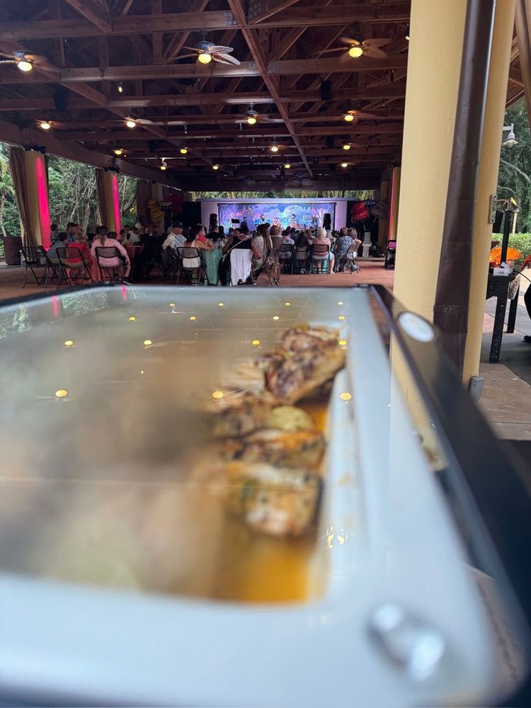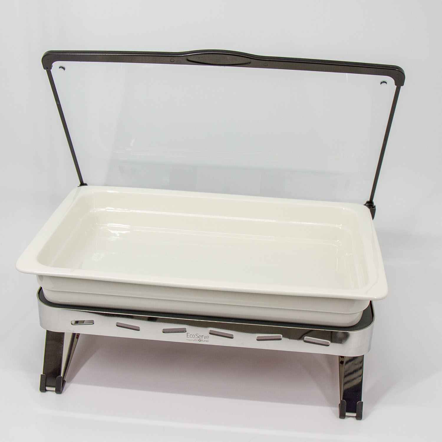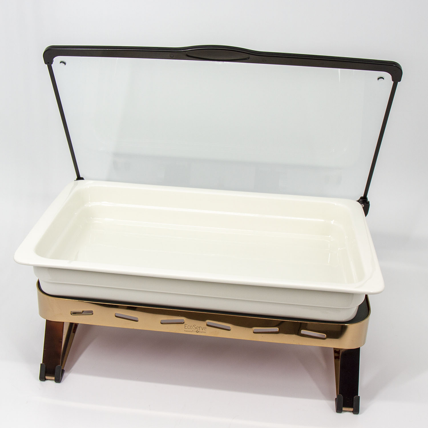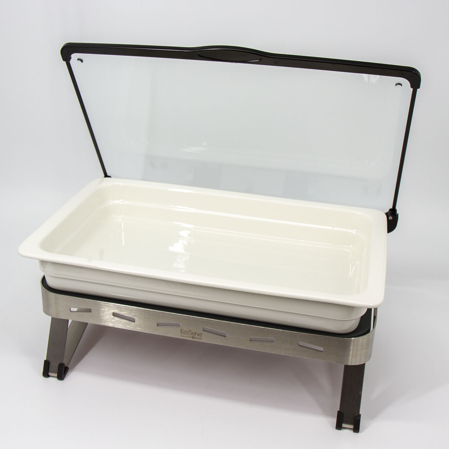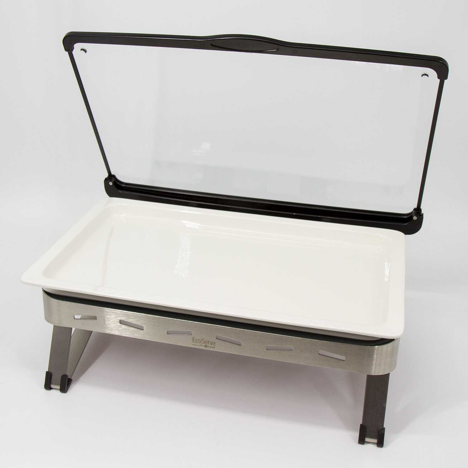 White EcoServe GN base, Glass Lid and Premium Black Aluminium Dish