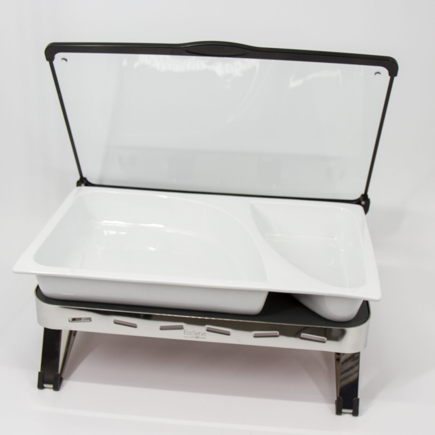 Polished Stainless Steel EcoServe GN base, Lid and Divided Dish with two pa