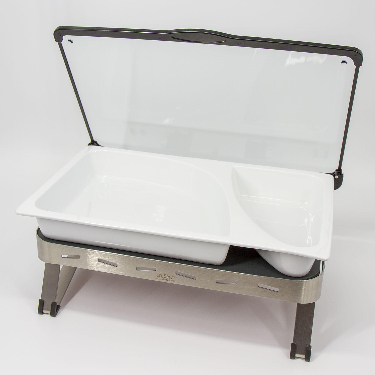Brushed Stainless Steel EcoServe GN base, Lid and Divided Dish with two par