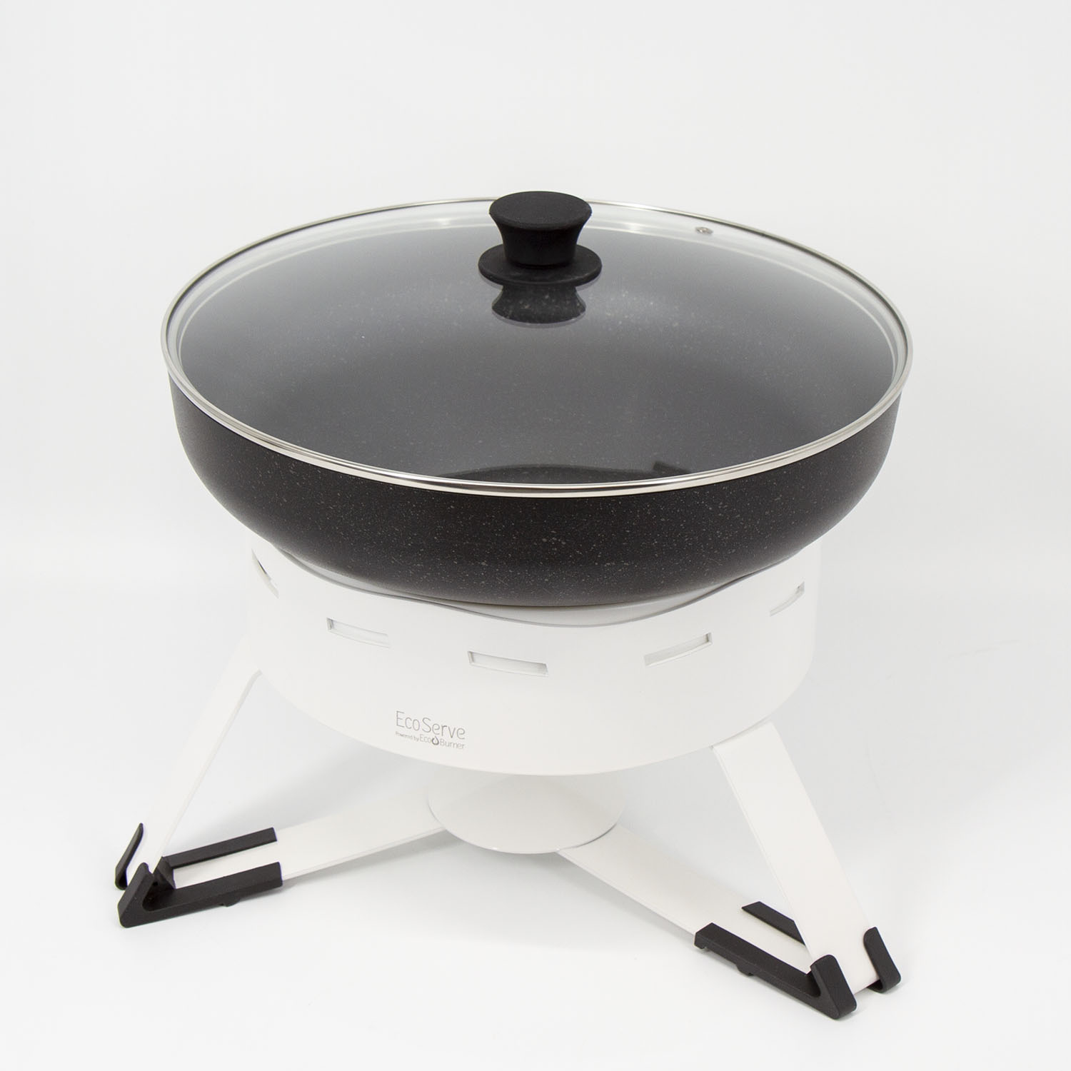 EcoServe Round Large White, lrg Lid, lrg COOL PACK, lrg Black Alu Dish