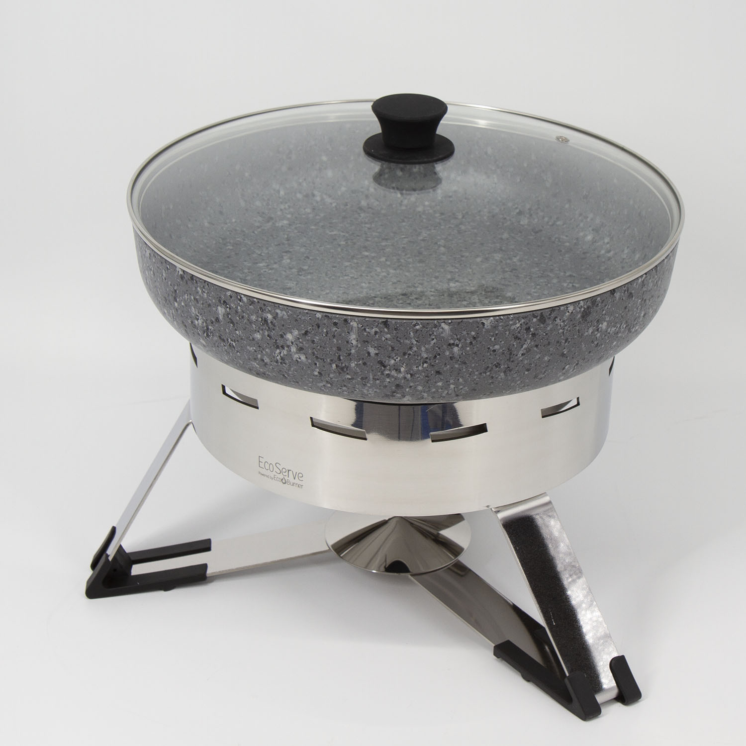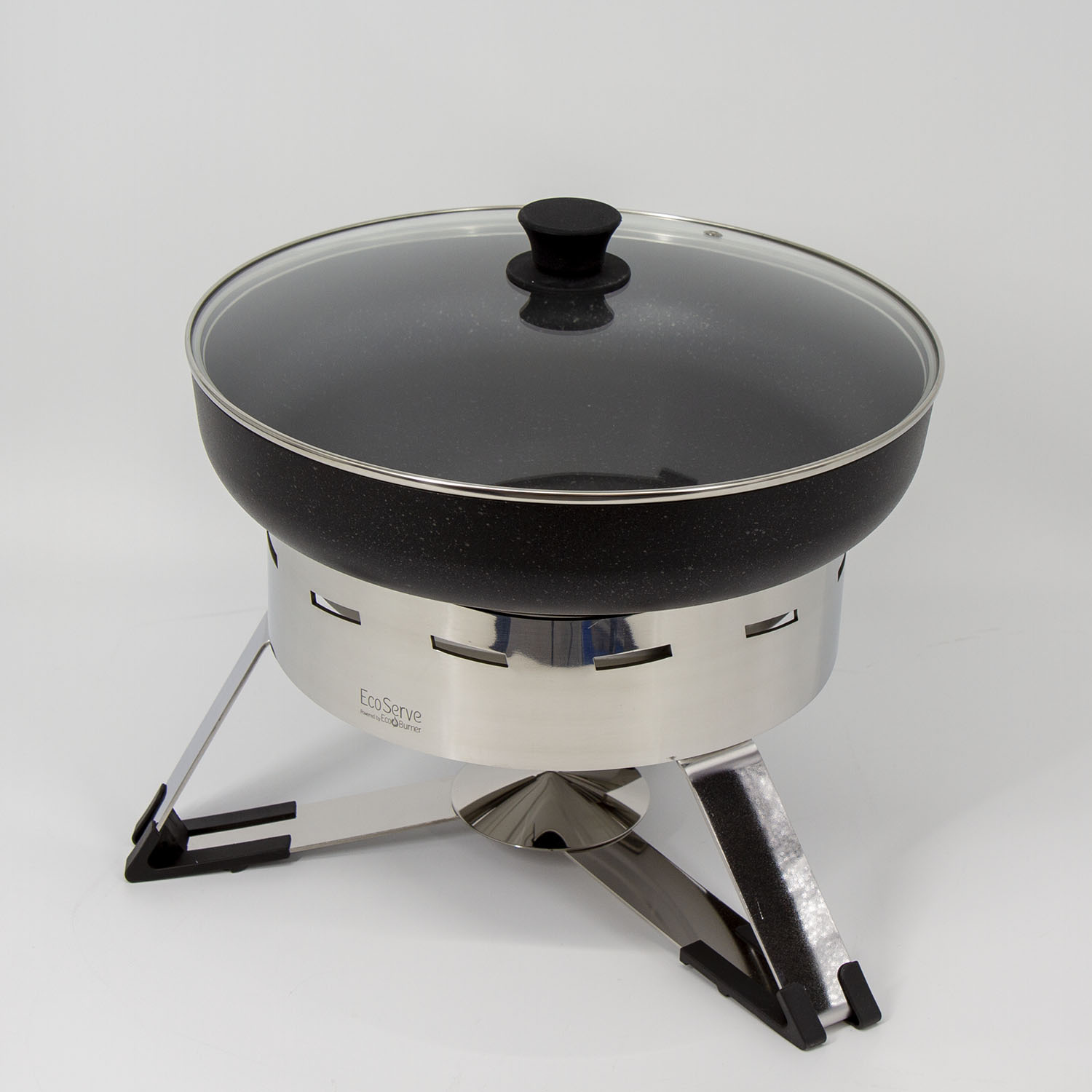 EcoServe Round Large Brushed SS, Lrg Lid, lrg COOL PACK, lrg Black Alu Dish