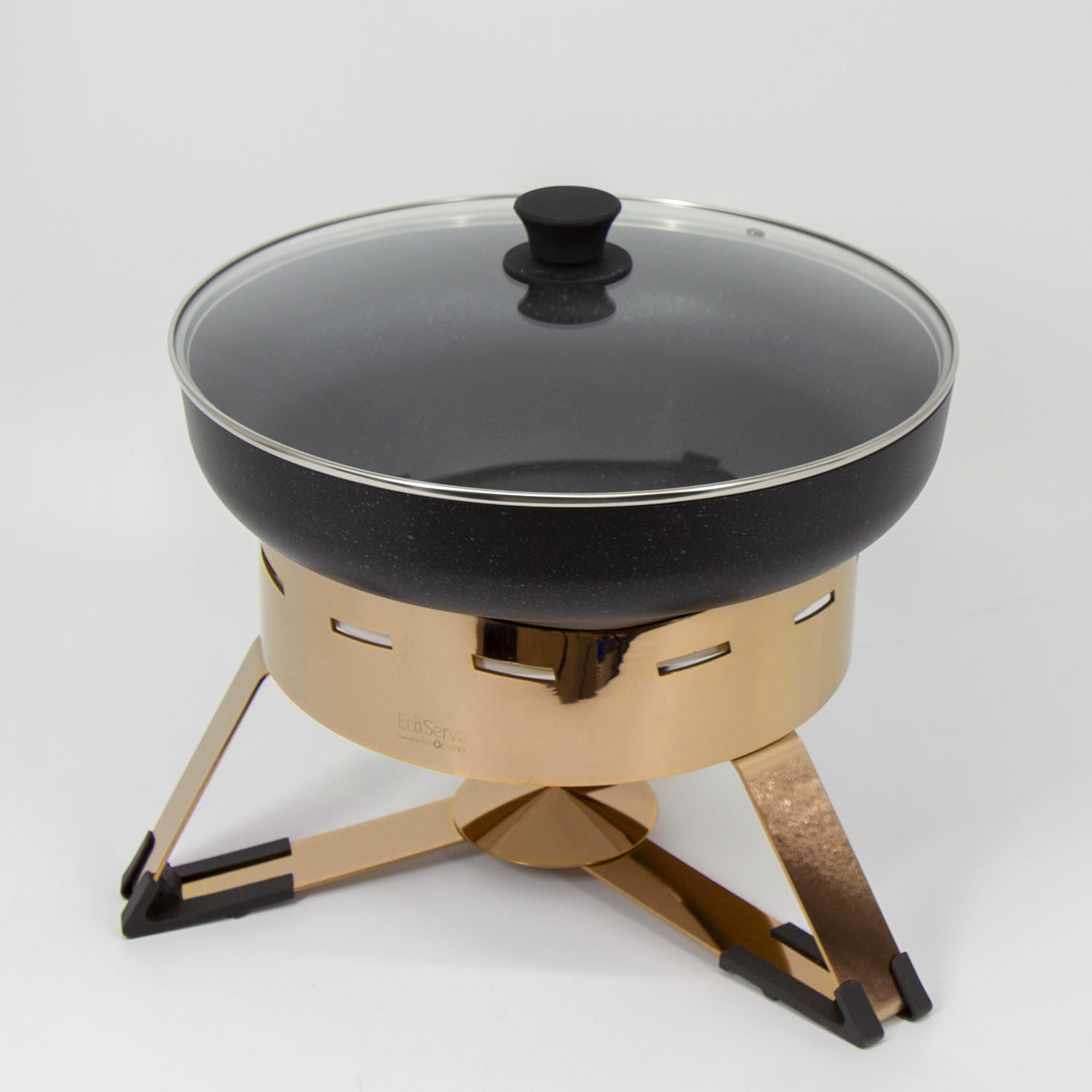 EcoServe Round Large Gold PVD, Large Lid, lrg COOL PACK, Lrg Black Alu Dish