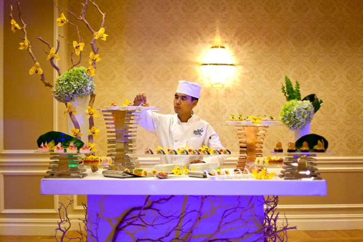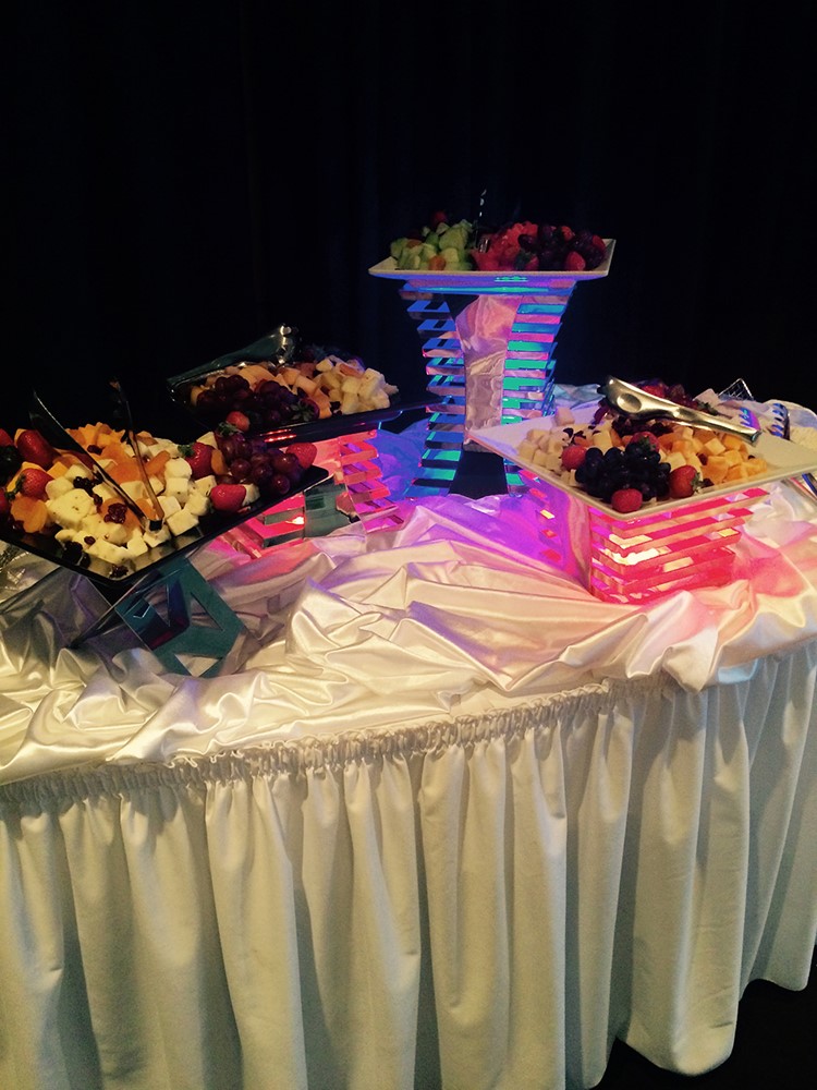 Escalate Series Risers interconnects harmoniously for an impressive Multi-Tiered Cooking & Food Display.
