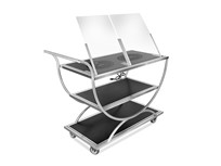 Flexible serving options and stylish design are a winning combination. Our Flip Cart rolling buffet serves up elegant utility for your next event and is available in two distinct designs. Perfect for safely transporting large quantities of food and drink across all surface types-and in proximity to all manner of party.