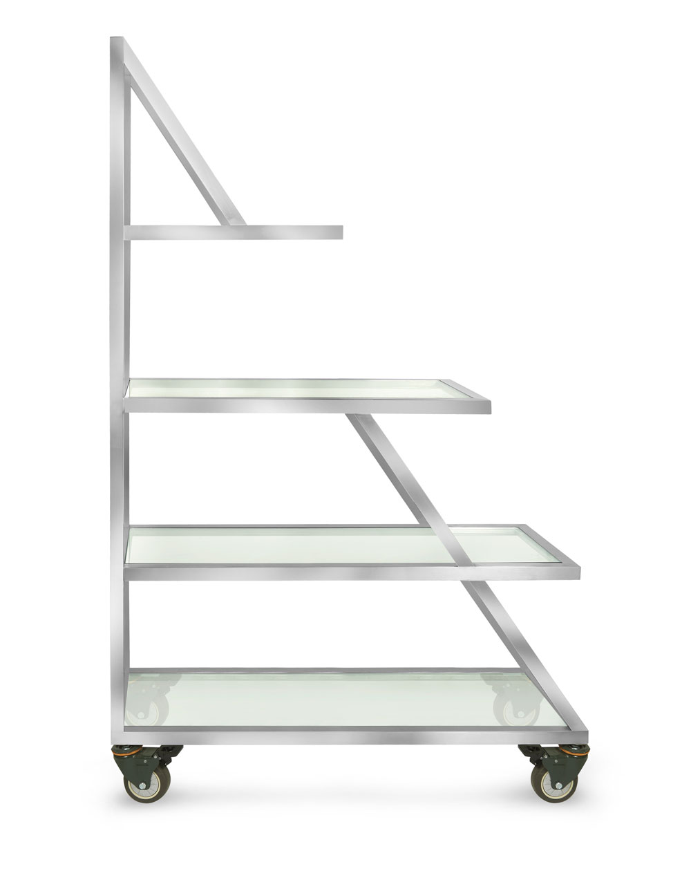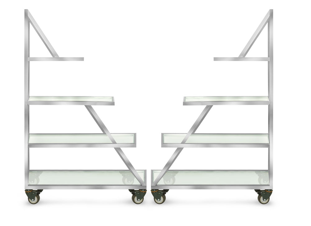 • Glass Shelves Firmly Set into Stainless Steel Frames
