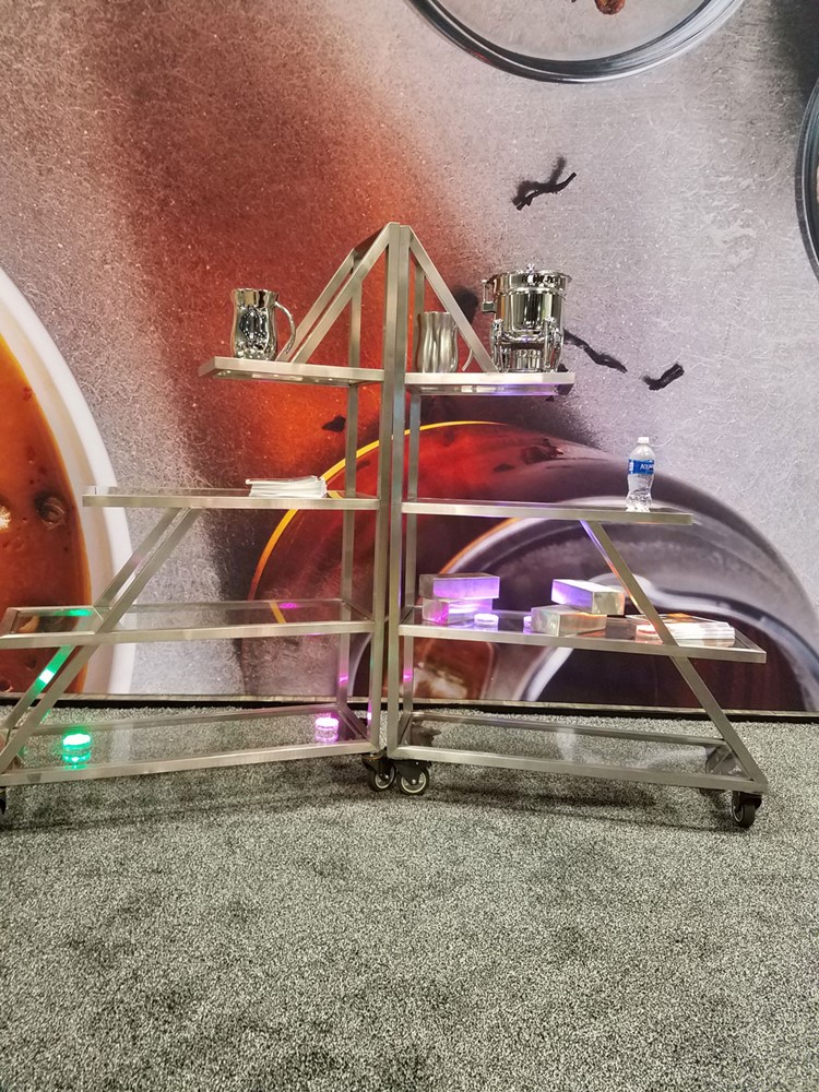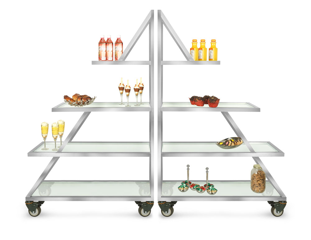A powerful display is an Eastern tabletop buffet. Our newest triangle buffet is the latest in our rolling buffet collections. A full service mobile buffet with the ability to flip to convert from buffet to action. Eight shelves, multiple functions and available in a variety colors with our XYLO collection. Perfect for Outdoor Dining!