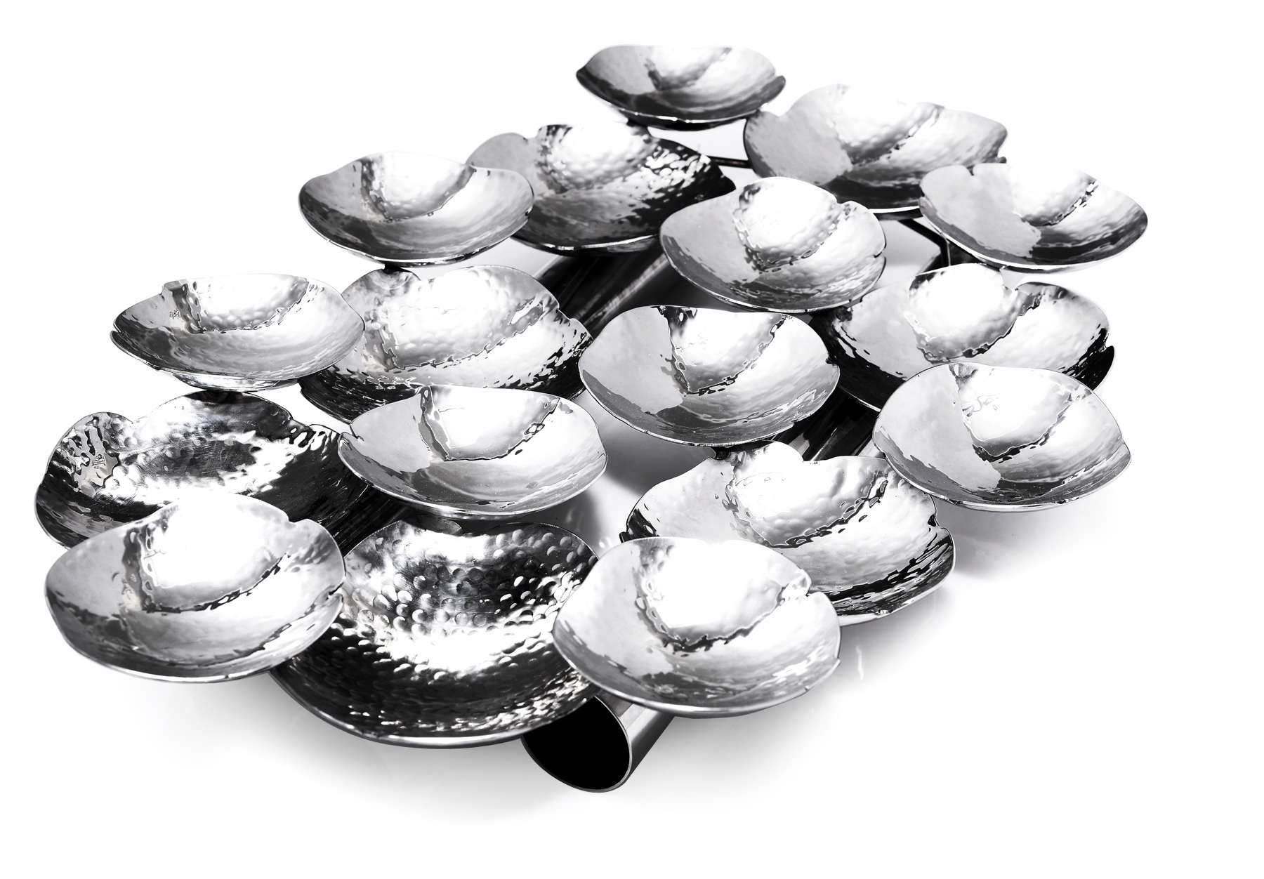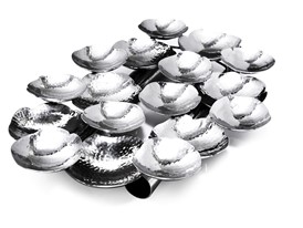 A dazzling option to liven up your display in the most tasteful manner. The Hammered Hors D’oeuvres Sectional Platter mirrors understated elegance and reflects well in any setting. The hammered design minimizes fingerprints and scratches. Designed in heavy duty 18/10 stainless steel.