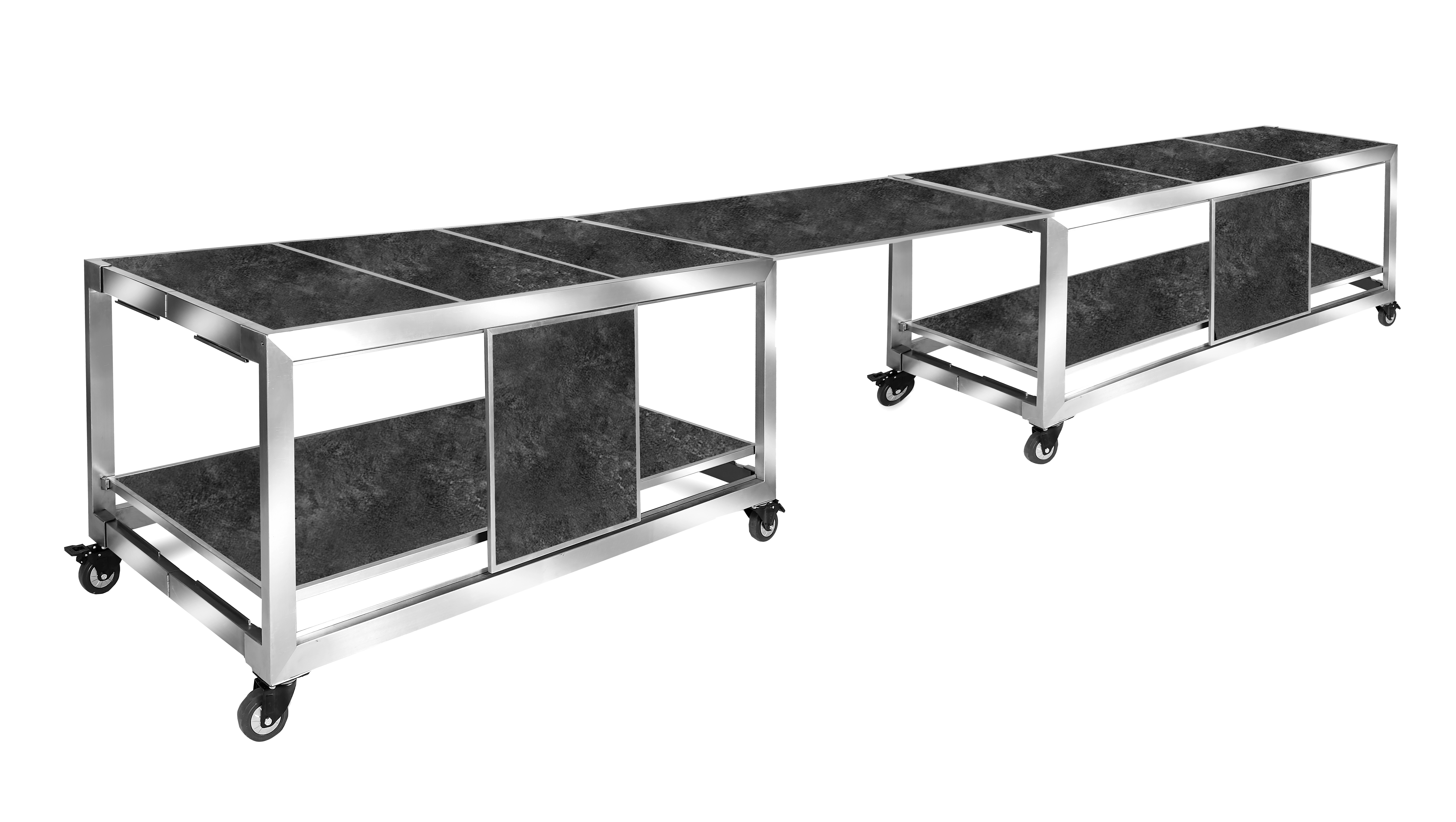 Floating straight panels easily hooks onto the Hub table