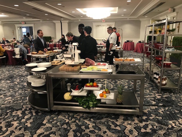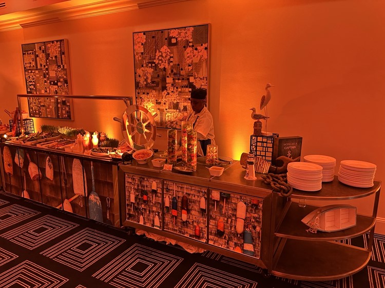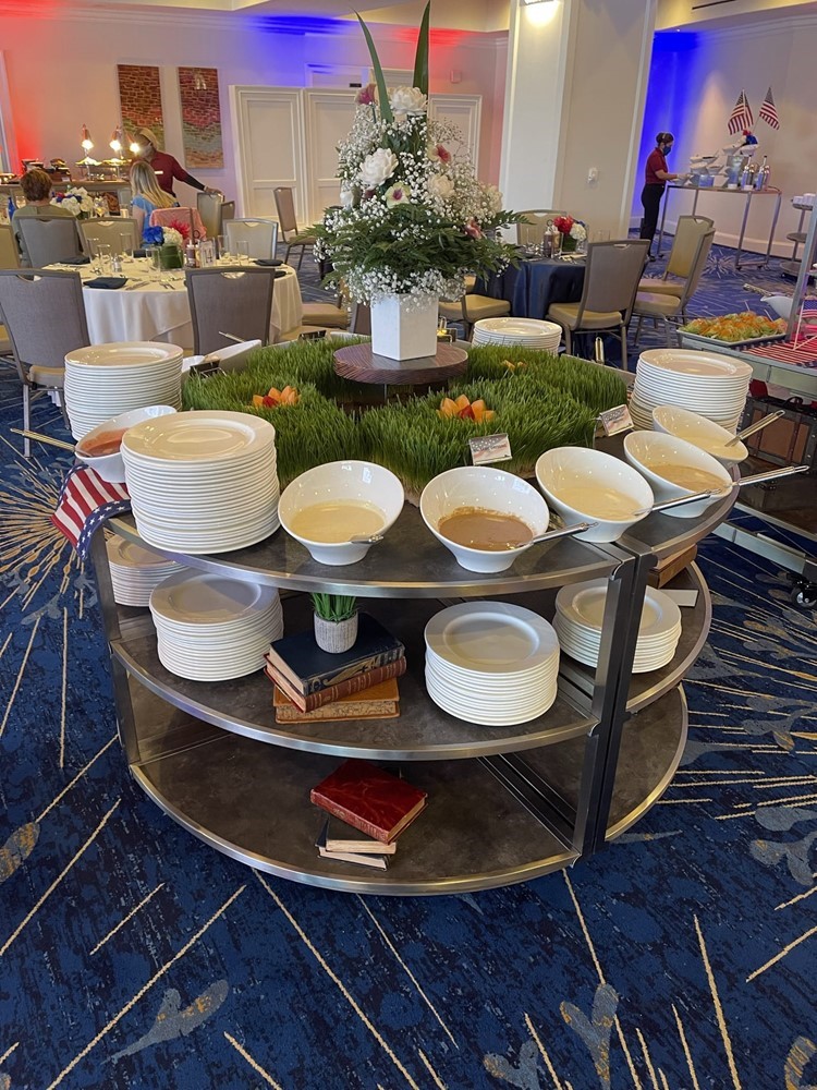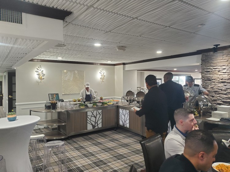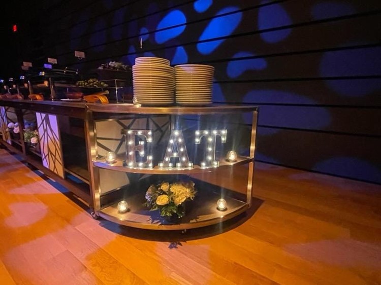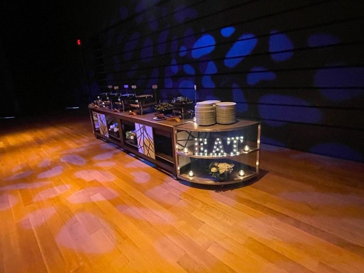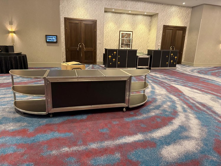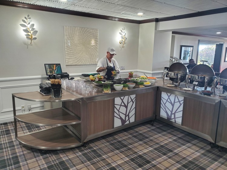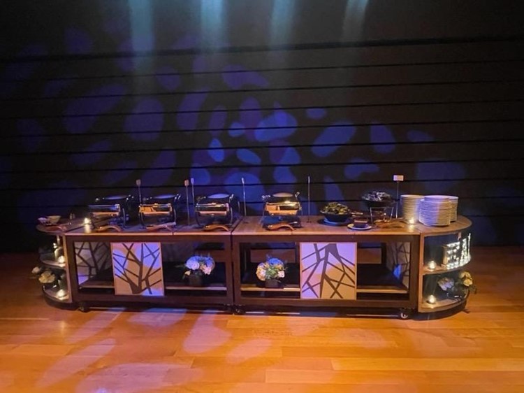 Combine a self-standing station to form a full-fledged buffet. Add the smooth, rounded corner table to seamlessly integrate multiple stations for a modern and sophisticated setup.