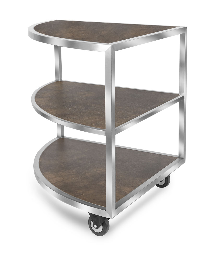 • Heavy Duty Stainless Steel • 3 Reversible Shelves • Locking Casters