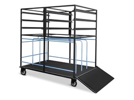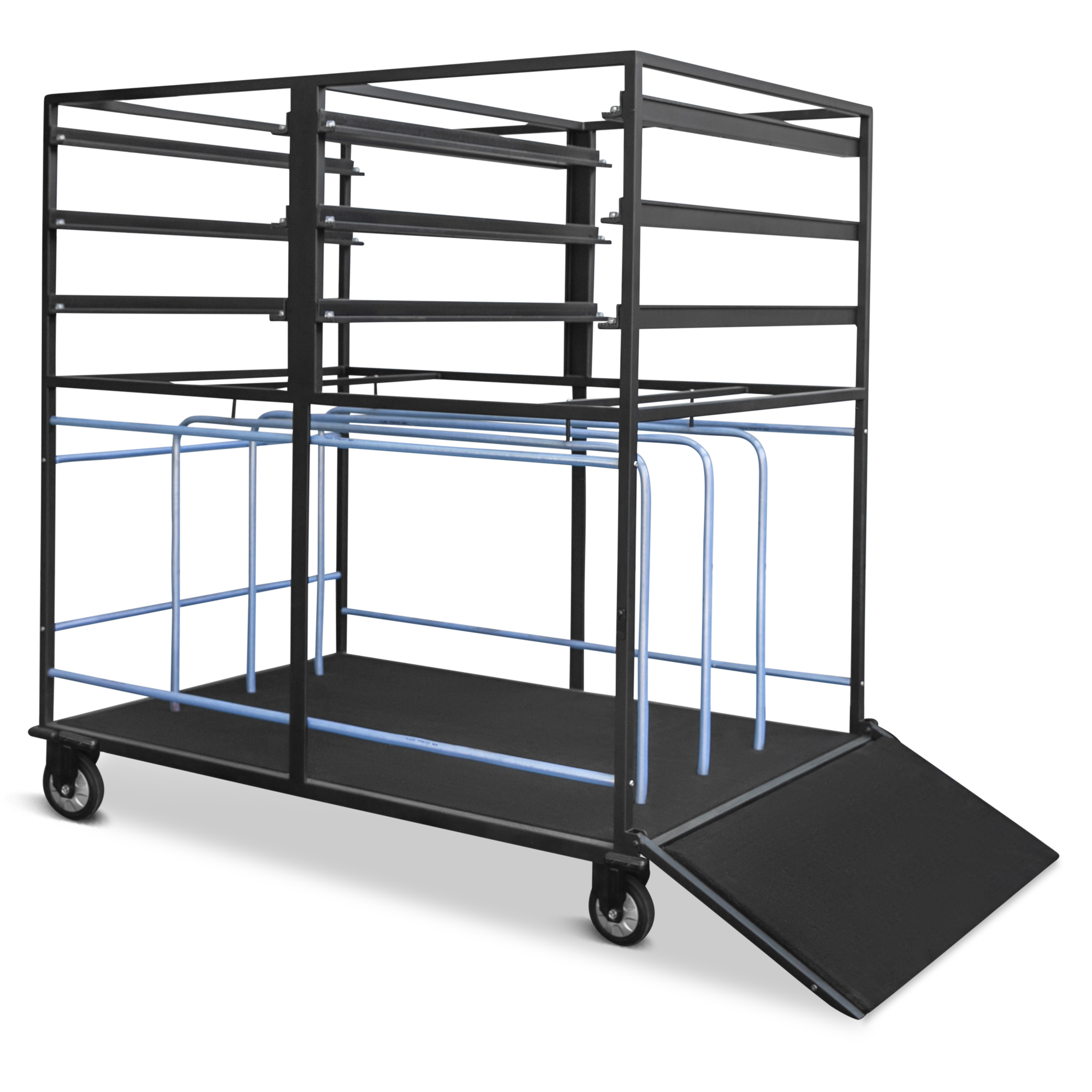 Hub Curved Buffet Storage Table Cart, 71 1/2" x46 1/2" x 74"H, fits 4 frames and 12 tiles of Hub Curved Buffet tables, includes bumpers, coated steel, black, (4) swivel casters (2 with brakes)