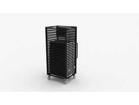 Coated steel, black, holds up to 29 tiles, includes bumpers and straps