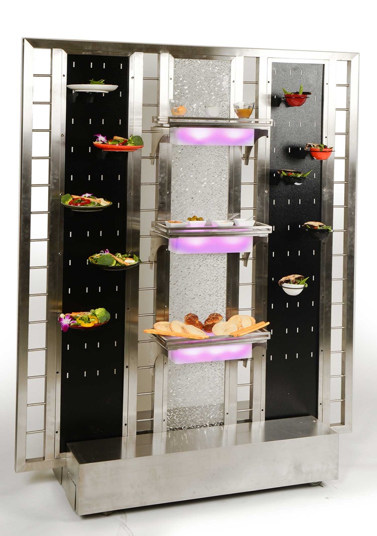 A smorgasbord of features..Add visual interest to your portable buffet with our LED Shelving available for the Grandstand. Acrylic lighted boxes are set in stainless steel frames for durability and easily click on and off.