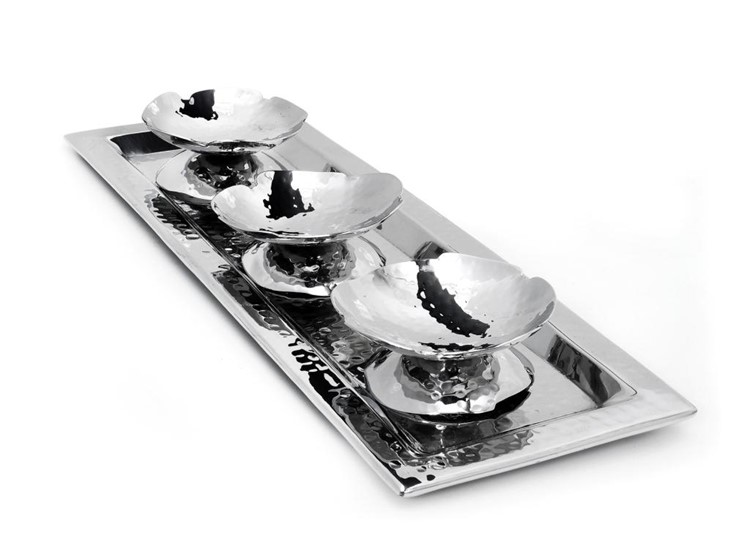 A dazzling option to liven up your display in the most tasteful manner. The Hammered Mini Single Dessert Tray mirrors understated elegance and reflects well in any setting. The hammered design minimizes fingerprints and scratches. Designed in heavy duty 18/10 stainless steel.