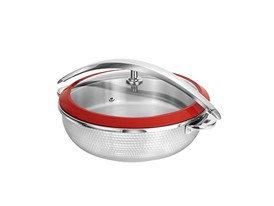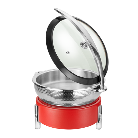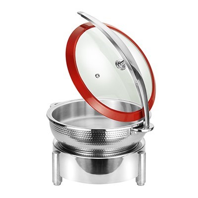 Stainless Steel Hammered Pot, Glass Lid w/ Red Rim