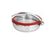 Stainless Steel Mirror Polished Pot, Glass Lid w/ Red Rim