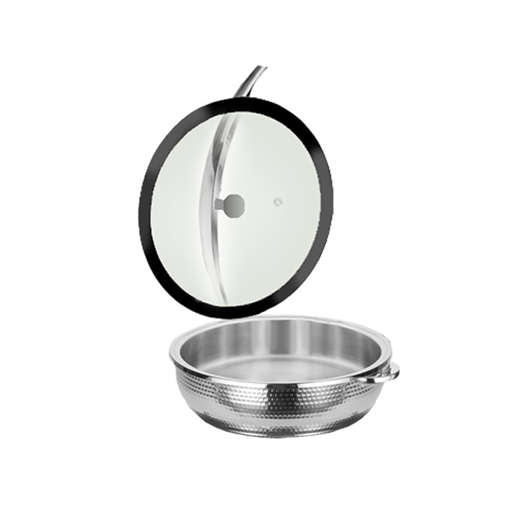 Stainless Steel Hammered Pot, Glass Lid w/ Black Rim
