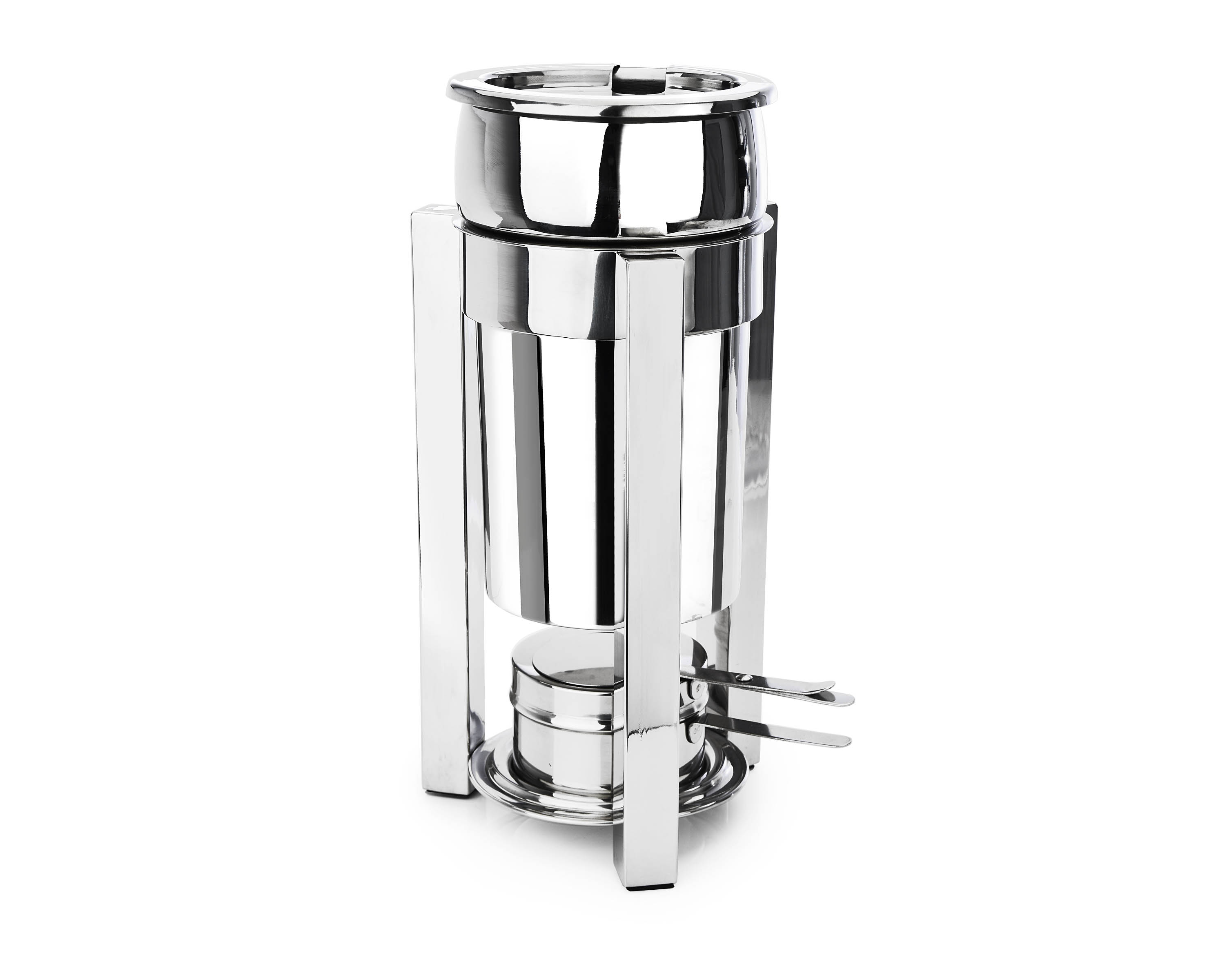 The Pillar'd redefined - square away your buffet with its sharp edge and induction capabilities. Eastern presents longtime favorites in style & performance, Popular Marmites for soup, sauce, syrups and Aus Jus. Non-skid rubber end for stability. Convenient shelf to place a gel sterno. Water pan and food pan included.