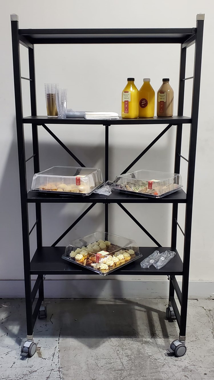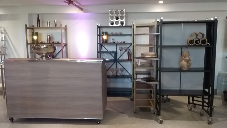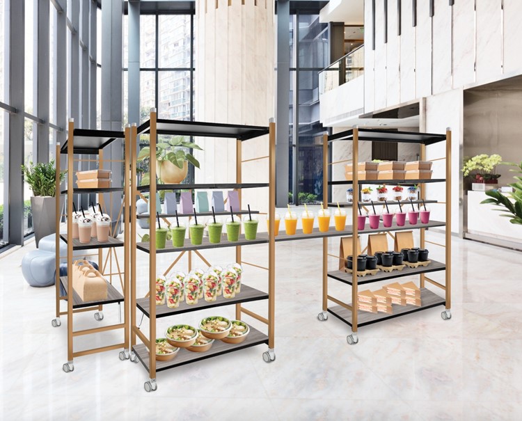 The most clever and unique one-step folding buffet kiosk, that is multi-functional & ultra-lightweight