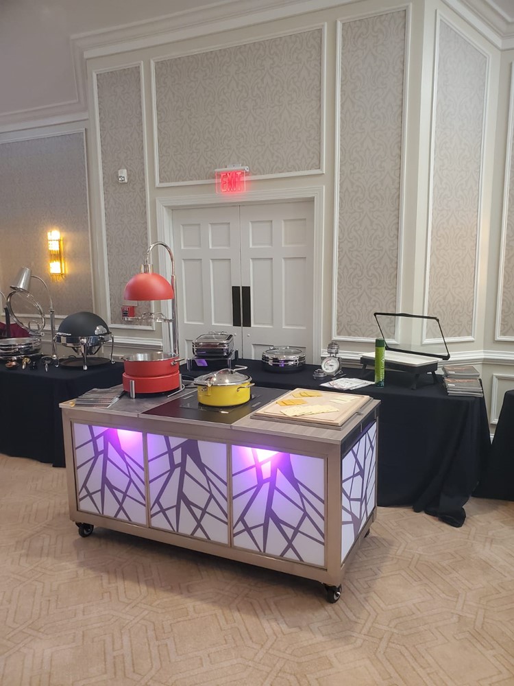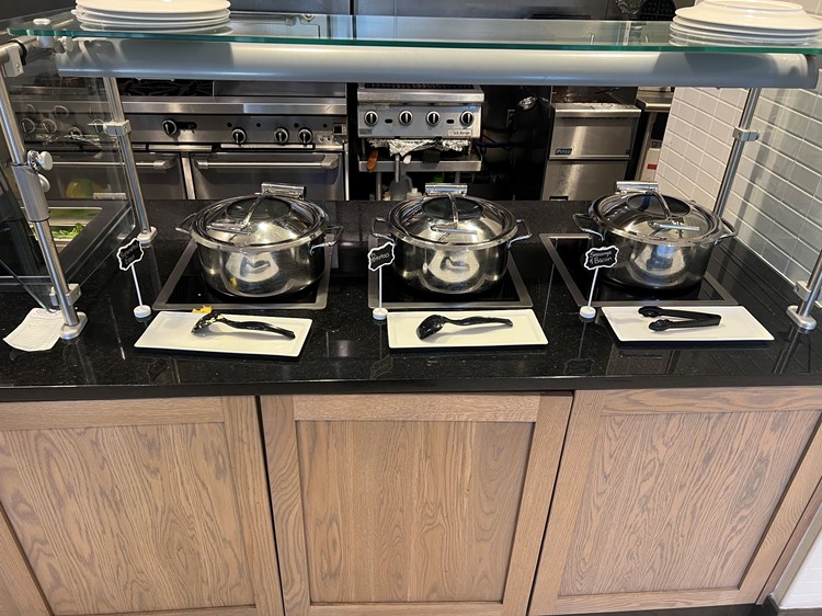 Mini Chafer, 3 pc. Set. Hammered Vessel, Hinged glass lid with attached handle, Food pan included.