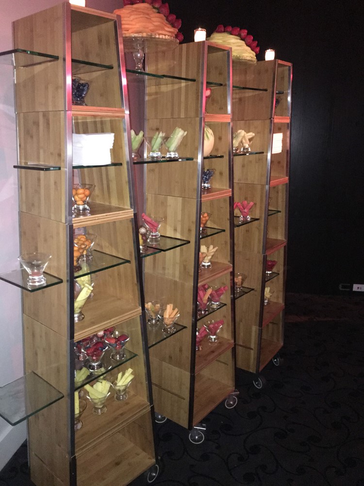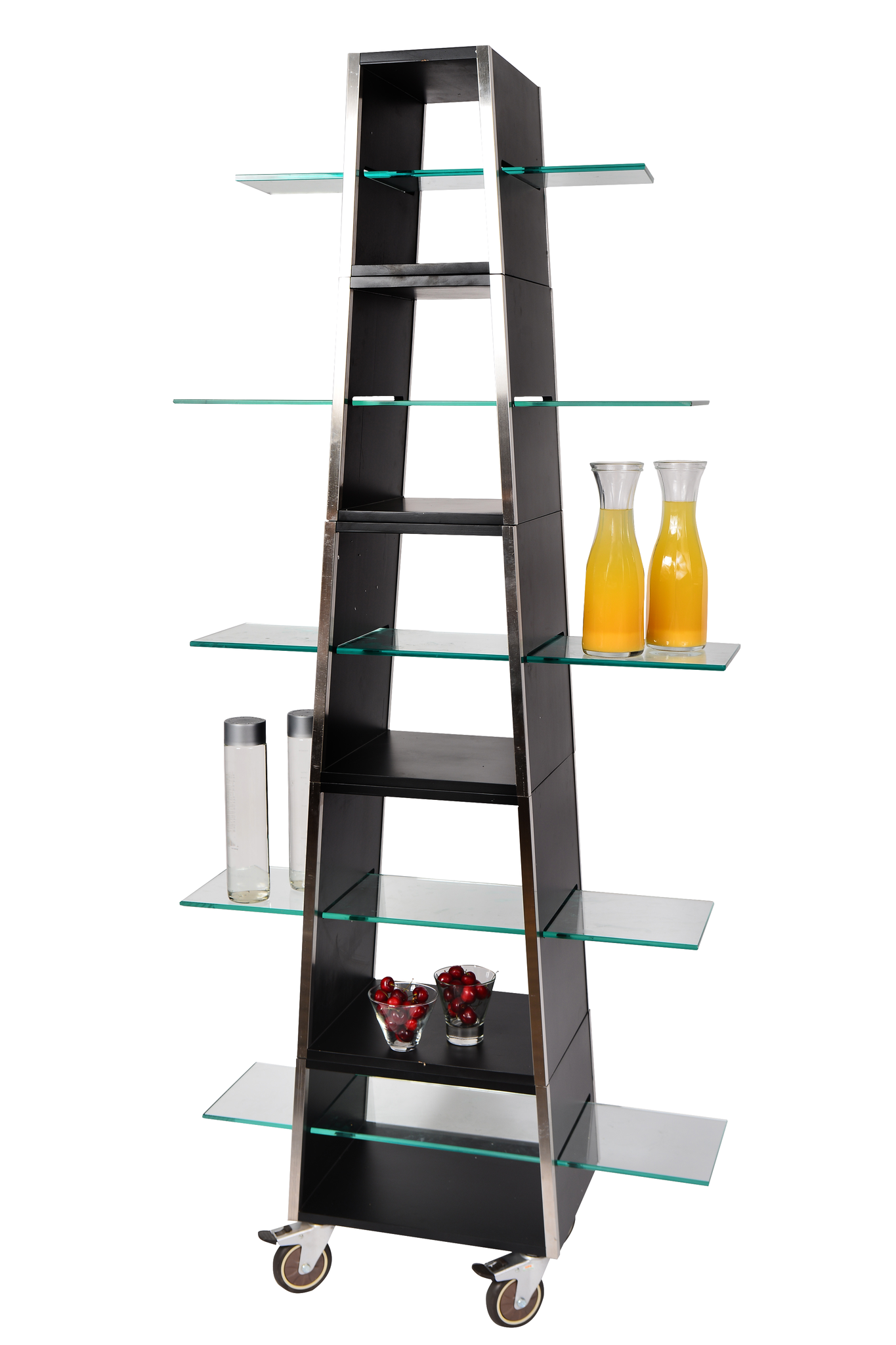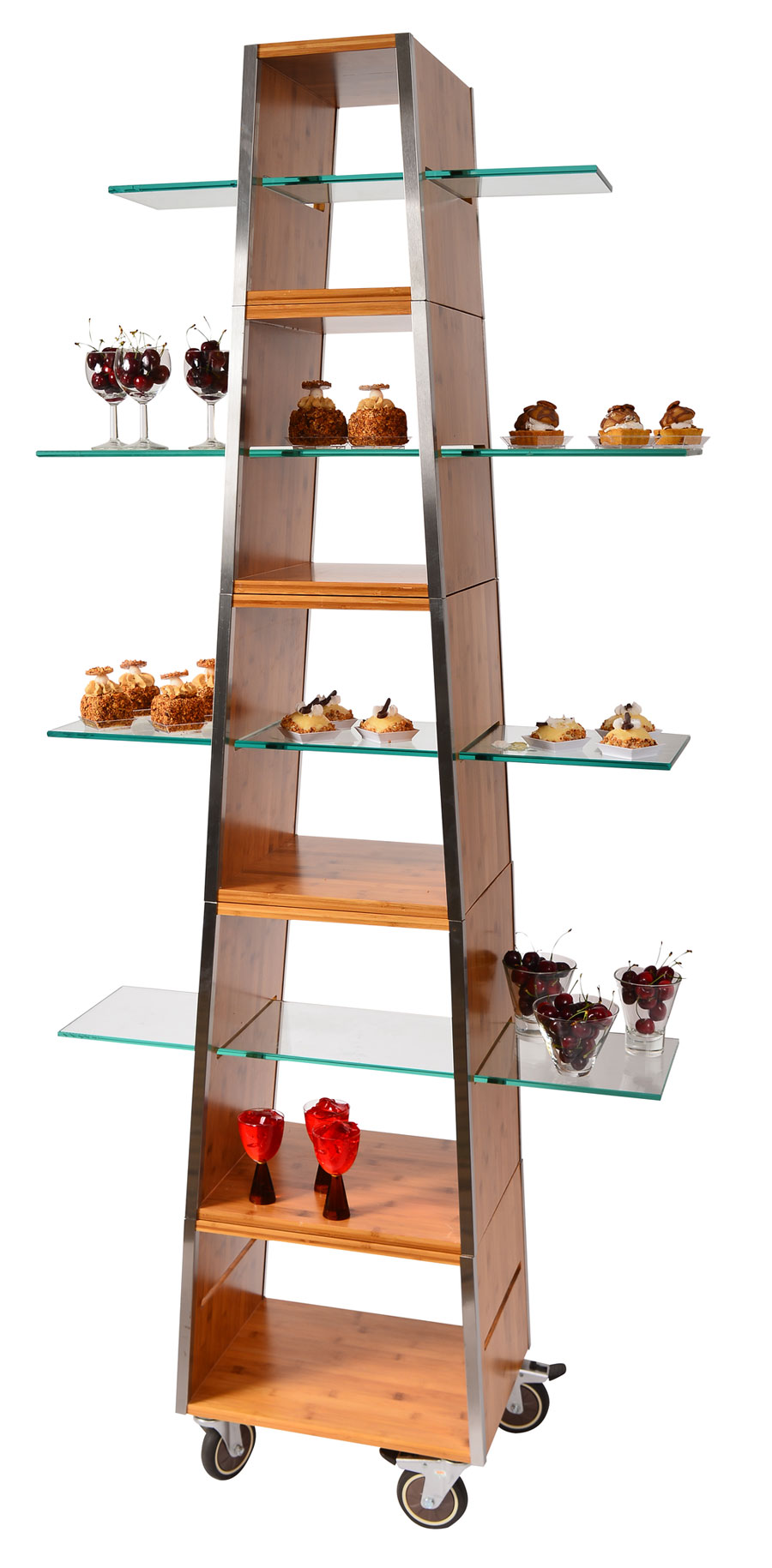 Let your creativity wander with the Pyramid Mobile Buffet that will help display the beauty there is in catering. With the most desirable features, the versatile Pyramid Mobile Buffet can be stacked, set on an angle, or connected with glass shelving for ingenious and diverse setups. To interconnect one cubby into the other, insert shelving in the 10” slot on each side thus increasing tray space. Use it as a mobile rolling buffet or as a tabletop display risers, your guest will love the open - airy design that complements the visually appealing food service. Perfect for Outdoor Dining!