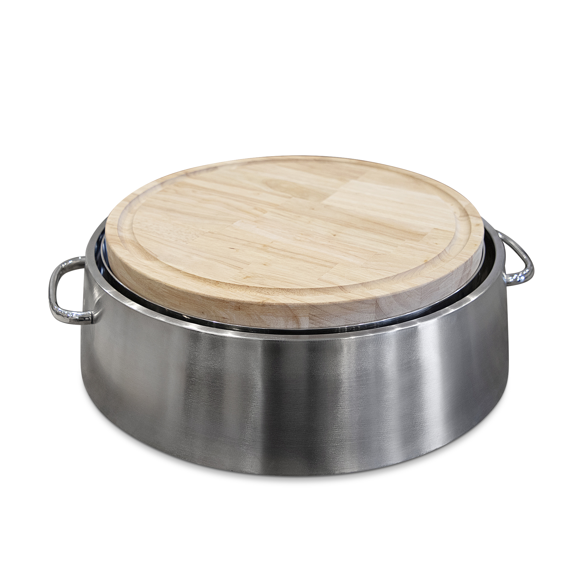 Round Carving Board station, Stainless Steel Frame, Butcher Block, Gravy Lane Optional - Hook on Heat Lamp (sold separately mode #9668) Overall Dimensions: stainless steel base 32"D 7.5"h butcher block 20" D