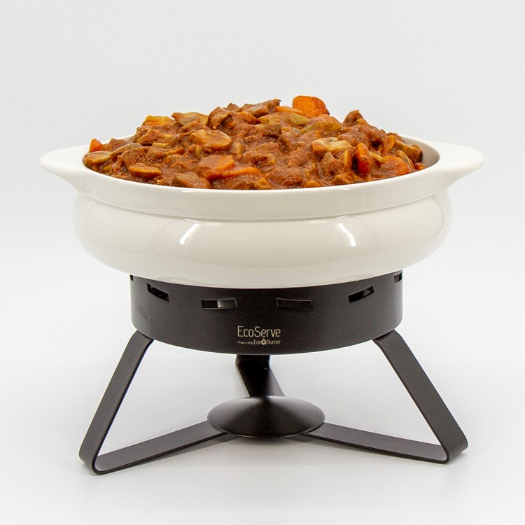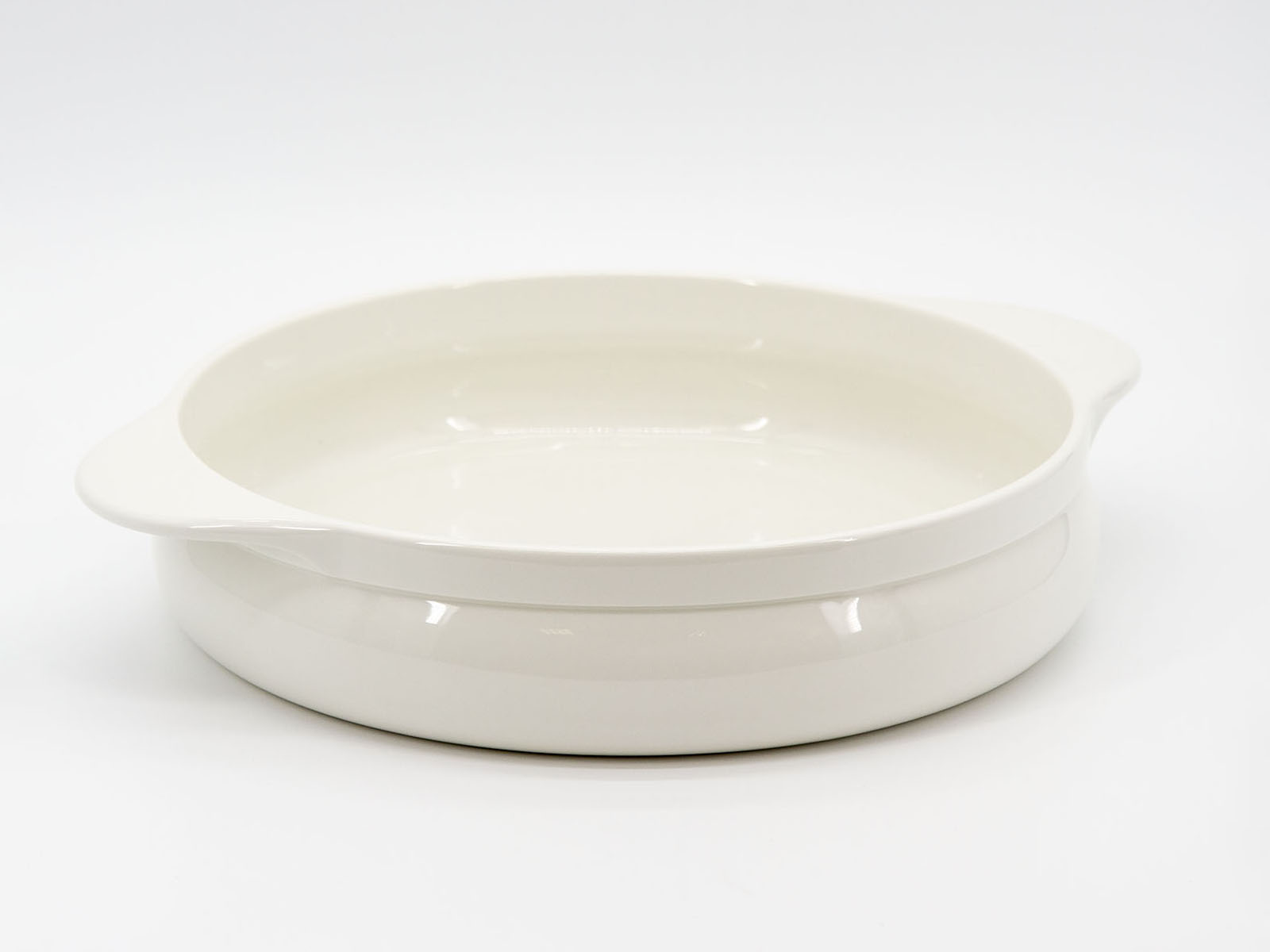 Large and small commercial-use porcelain dishes that are designed to dock securely into the EcoServe Round units. These premium dishes enhance lifestyle dioning experiences as they provide chefs with an opportunity to go direct from oven to buffet display. The large #EB15321 has a capacity of 5.7 quarts and the capacity of the small #EB15319 is 3.85 quarts.
