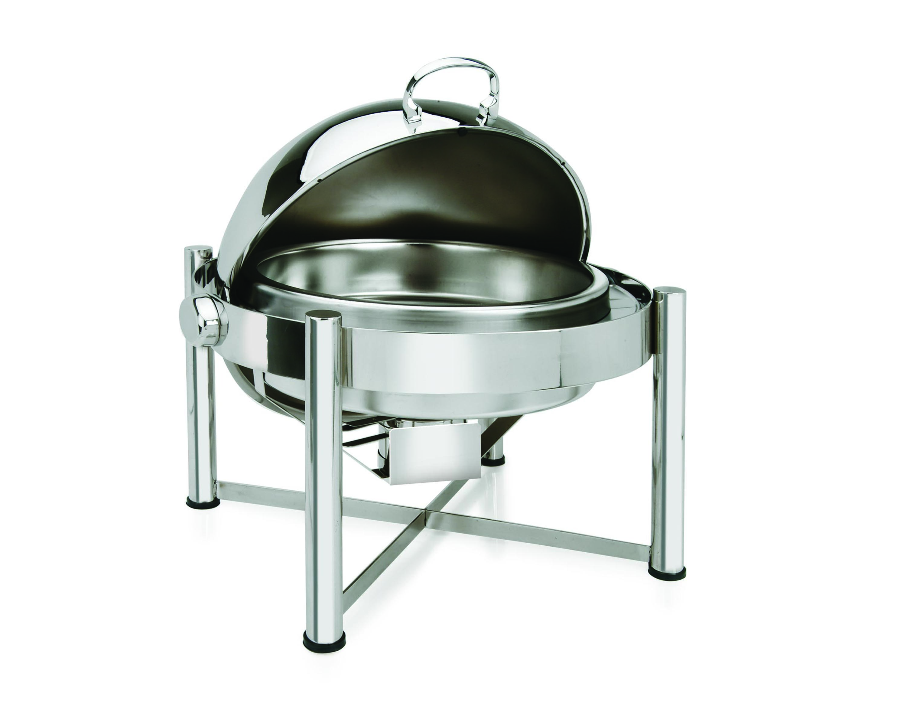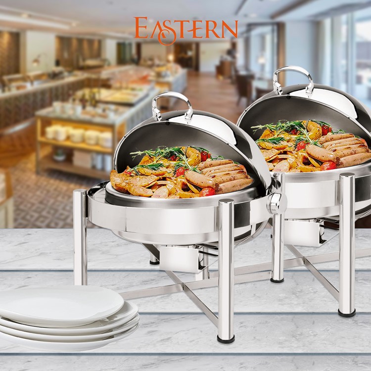 Eastern’s Round chafing dish will elevate your entertaining to a new level. Its elegant dome cover provides a high profile look and stops at any angle for safety purposes. Designed in heavy duty stainless steel, one piece constructed. Convenient shelf to place a gel sterno. Perfect weight for easy transport. Available in rectangular as well, with a variety of legs.