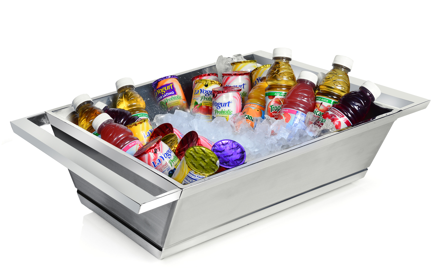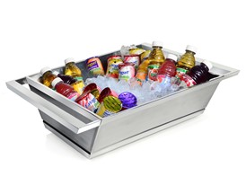 The perfect solution for cold display.... Stainless Steel Double Wall Beverage Tub. High end, elegant presentation combined with ease of use and care. It is manufactured in an extra heavy gauge 18/10 stainless steel featuring an attractive two tone finish. The sturdy portable tub has many functions and could be utilized on breakfast buffets housing cold beverages and yogurts.
