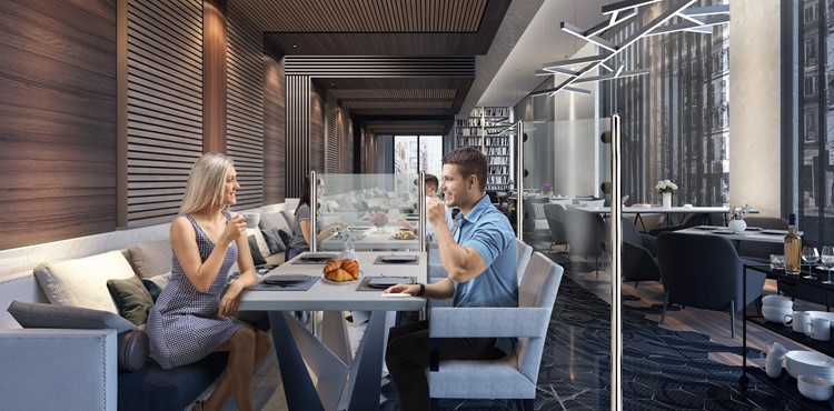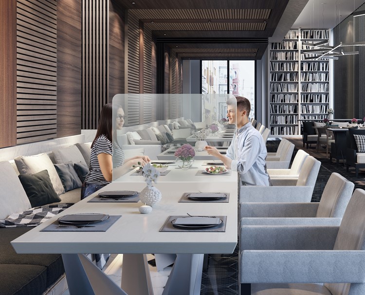 Buffet Shield, Self Standing, Transaction cut out 14" x 6".