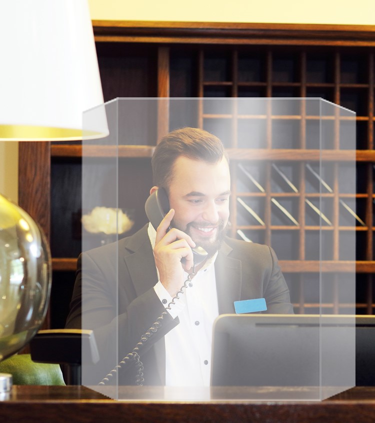 Tabletop Shield, Self Standing, Transaction cut out 14" x 6".